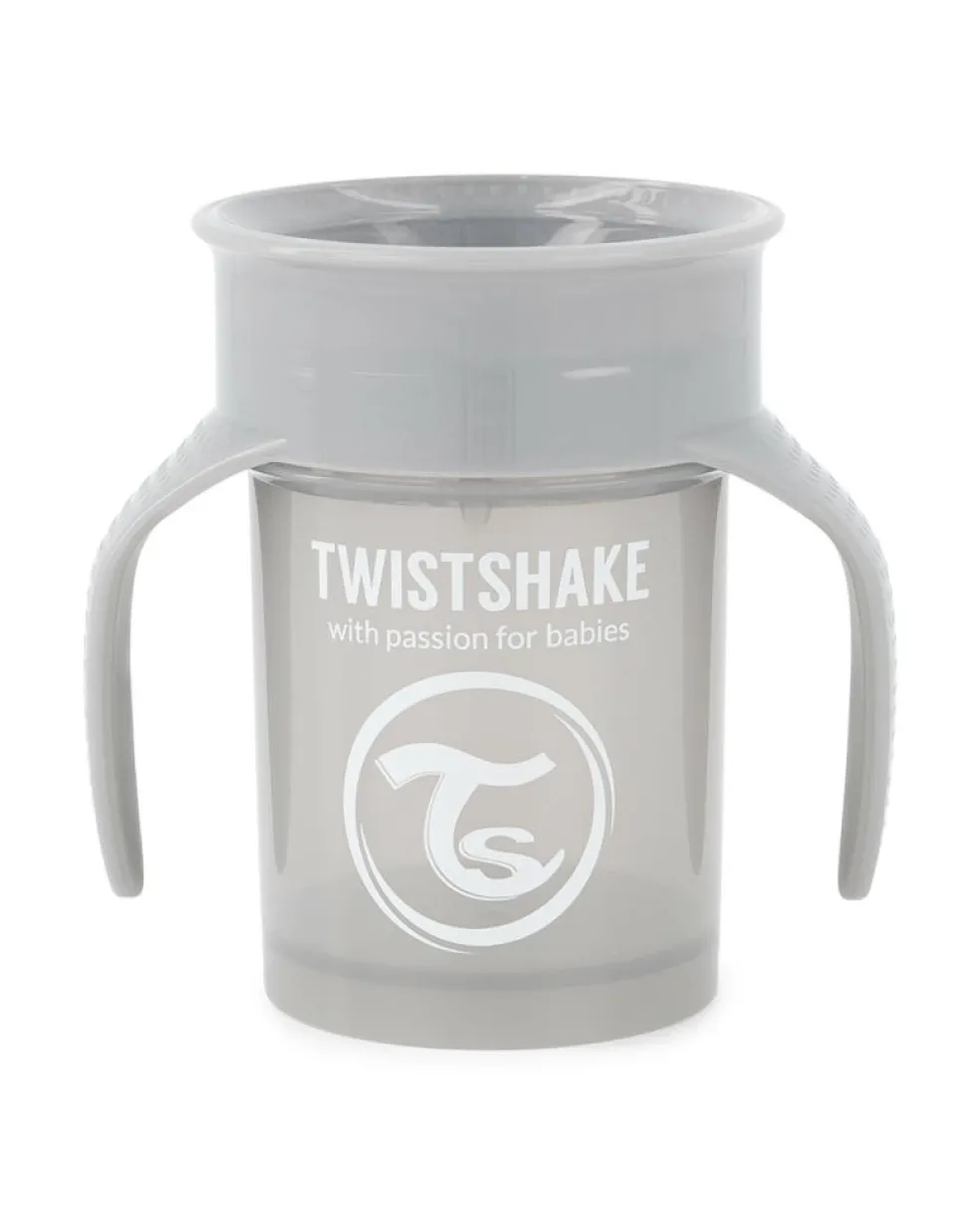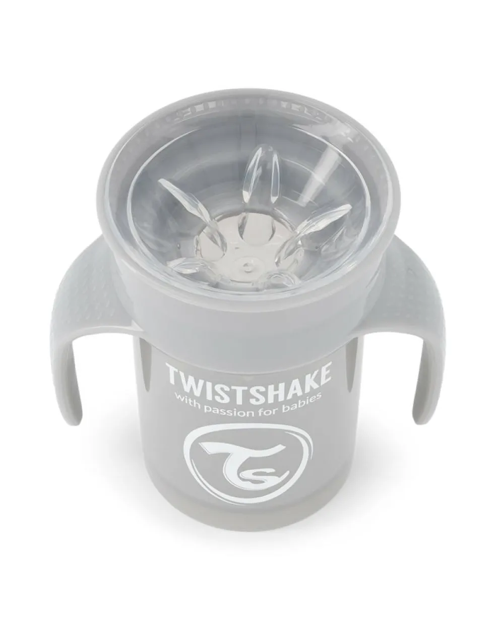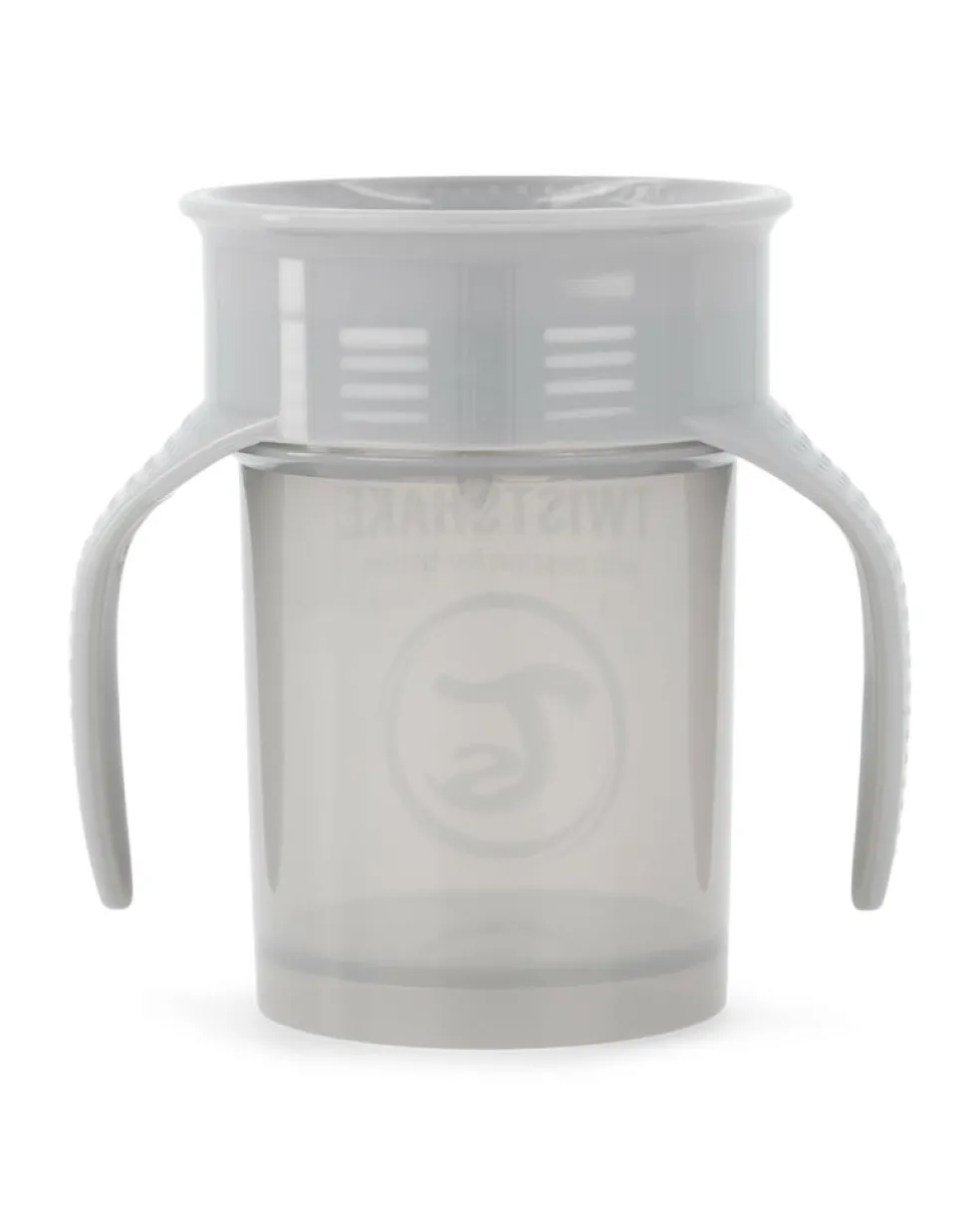 Vores 360 kop har alle de smarte funktioner, man kunne ønske sig, og giver samtidig dit barn mulighed at øve sig på at drikke af et almindeligt glas. Den specielle silikoneforsegling lukker automatisk tuden, når barnet stopper med at drikke, hvilket gør det nemt for dit barn at kontrollere væskemængden.