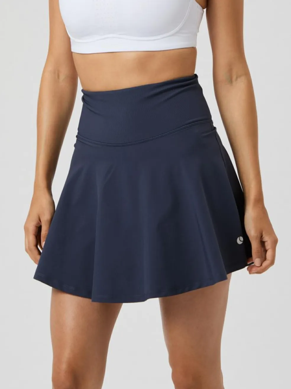 Den har høj talje og kort længde med indershorts i blødt ribstof for komfort, en bredere linning med powermesh på indersiden for ekstra støtte, en baglomme til opbevaring af bolde og et tennisboldlogo på siden.