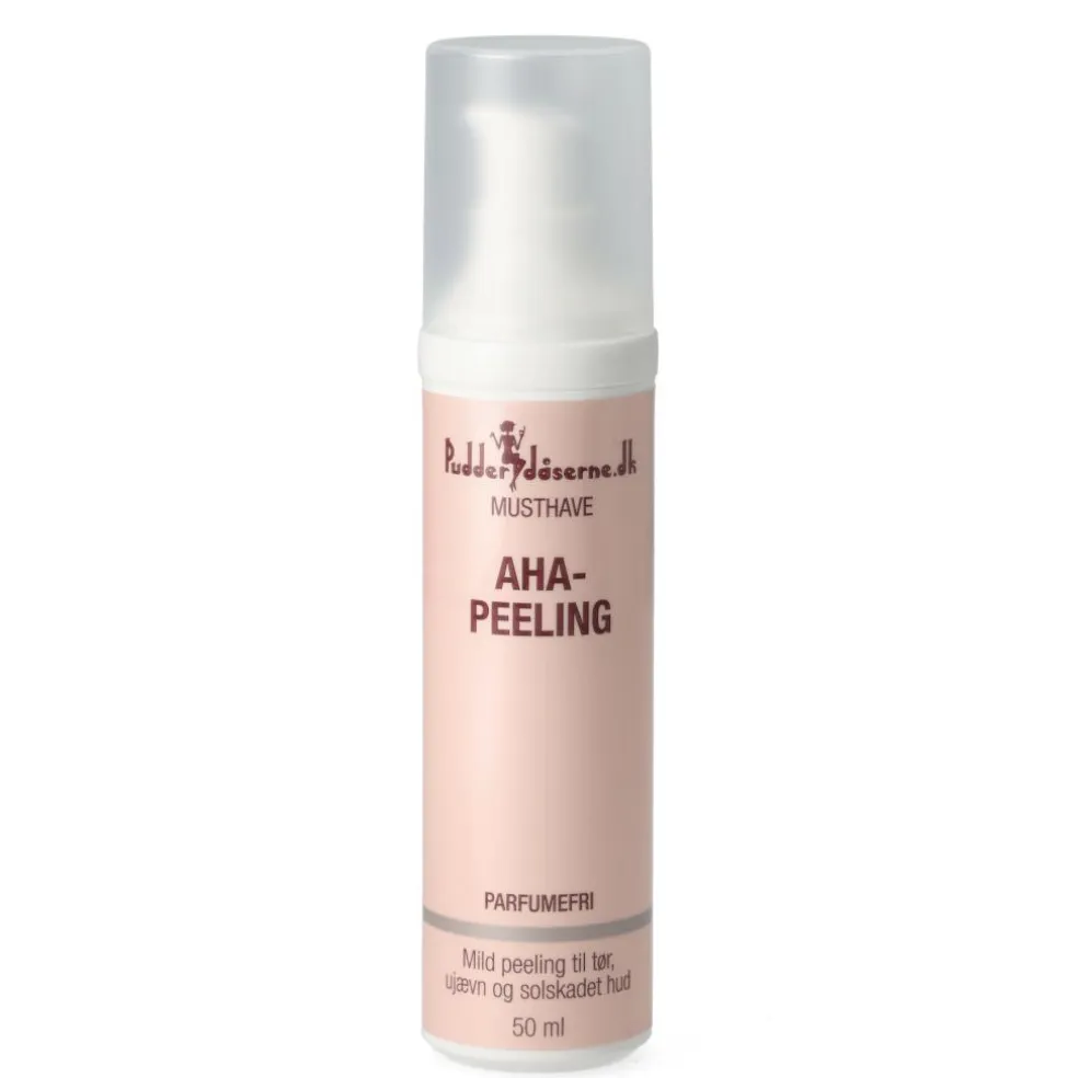 - AHA Peeling passer til alle hudtyper, men dem med normal til tør eller solskadet hud vil finde det specielt gavnligt