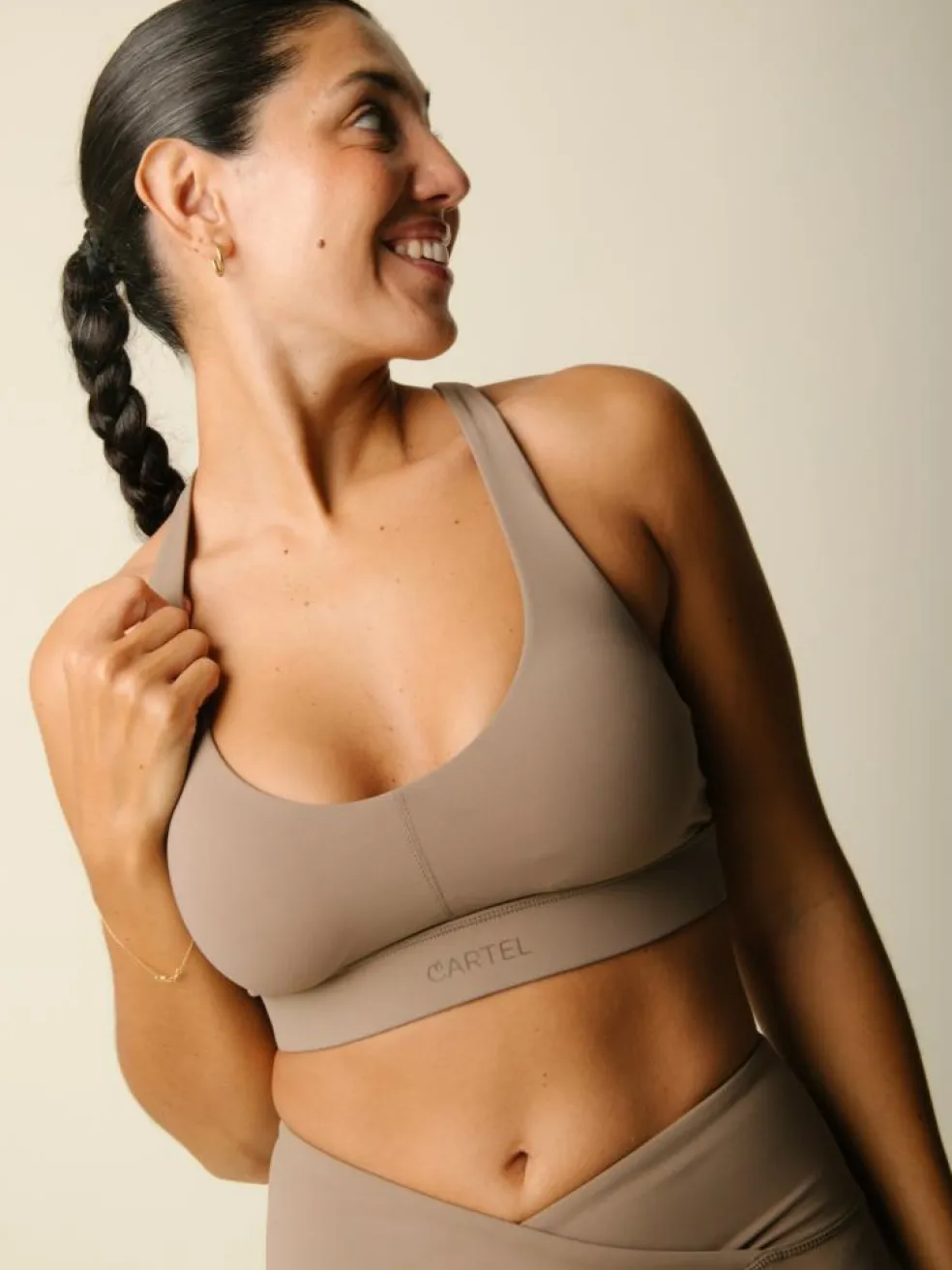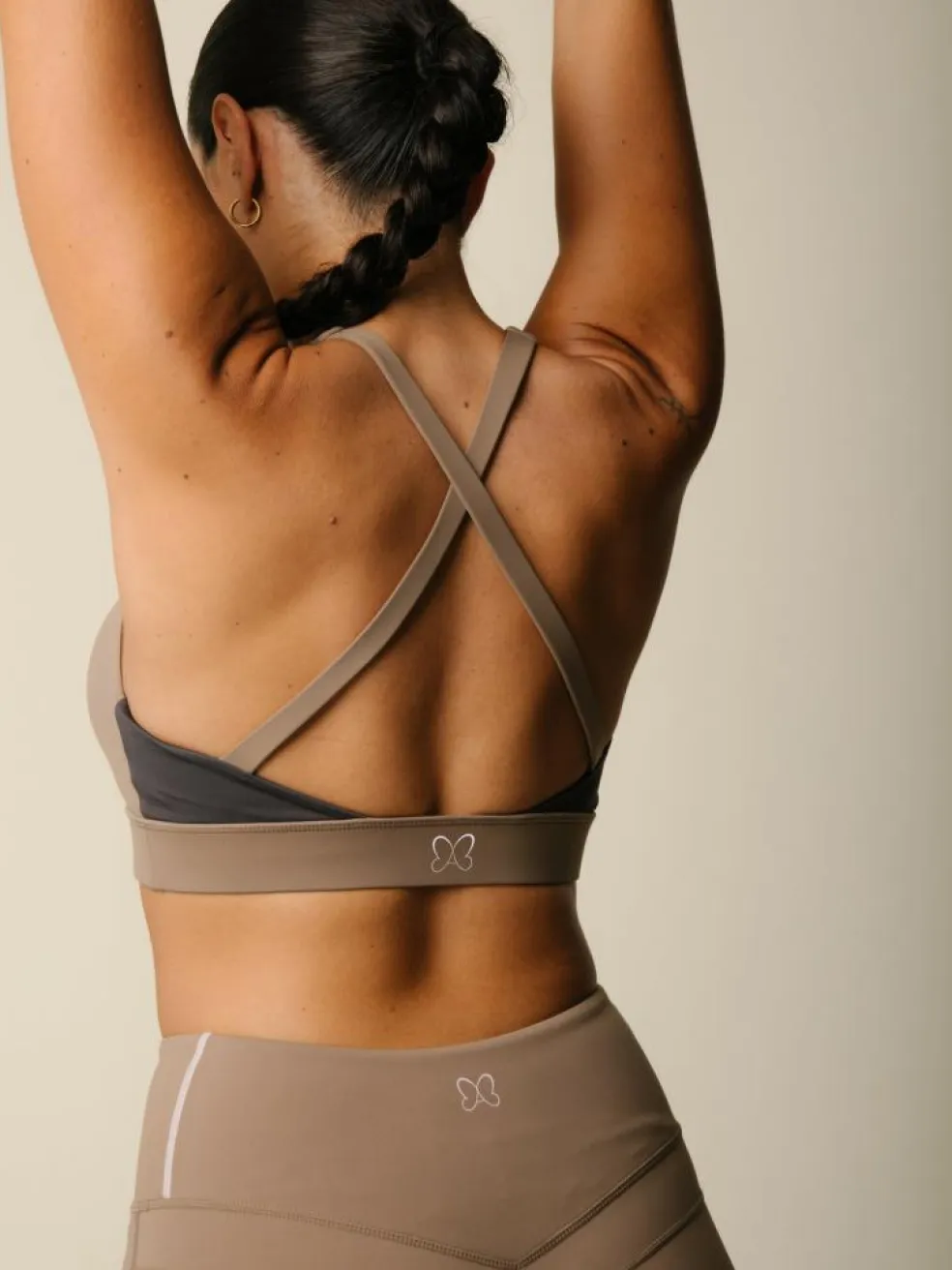 De krydsede stropper følger dine bevægelser, og den støttende kvalitet føles både let og sikker. Den er feminin, funktionel – og lavet til at blive båret igen og igen.