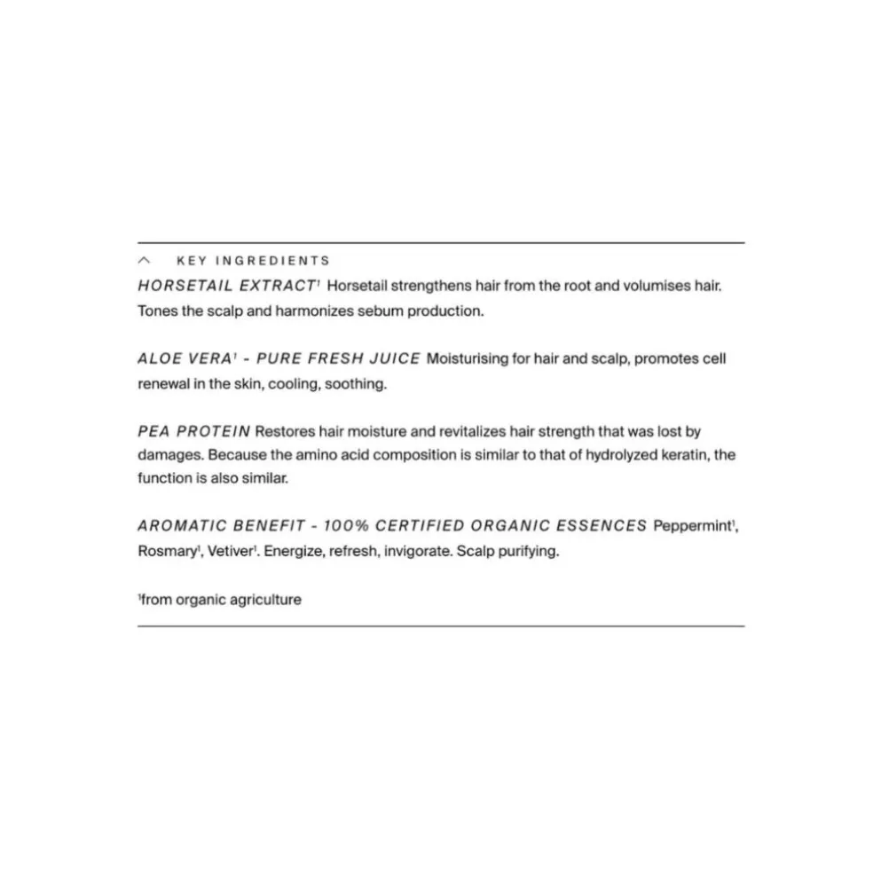 Stimulerende, forfriskende, styrkende og renser hovedbunden.