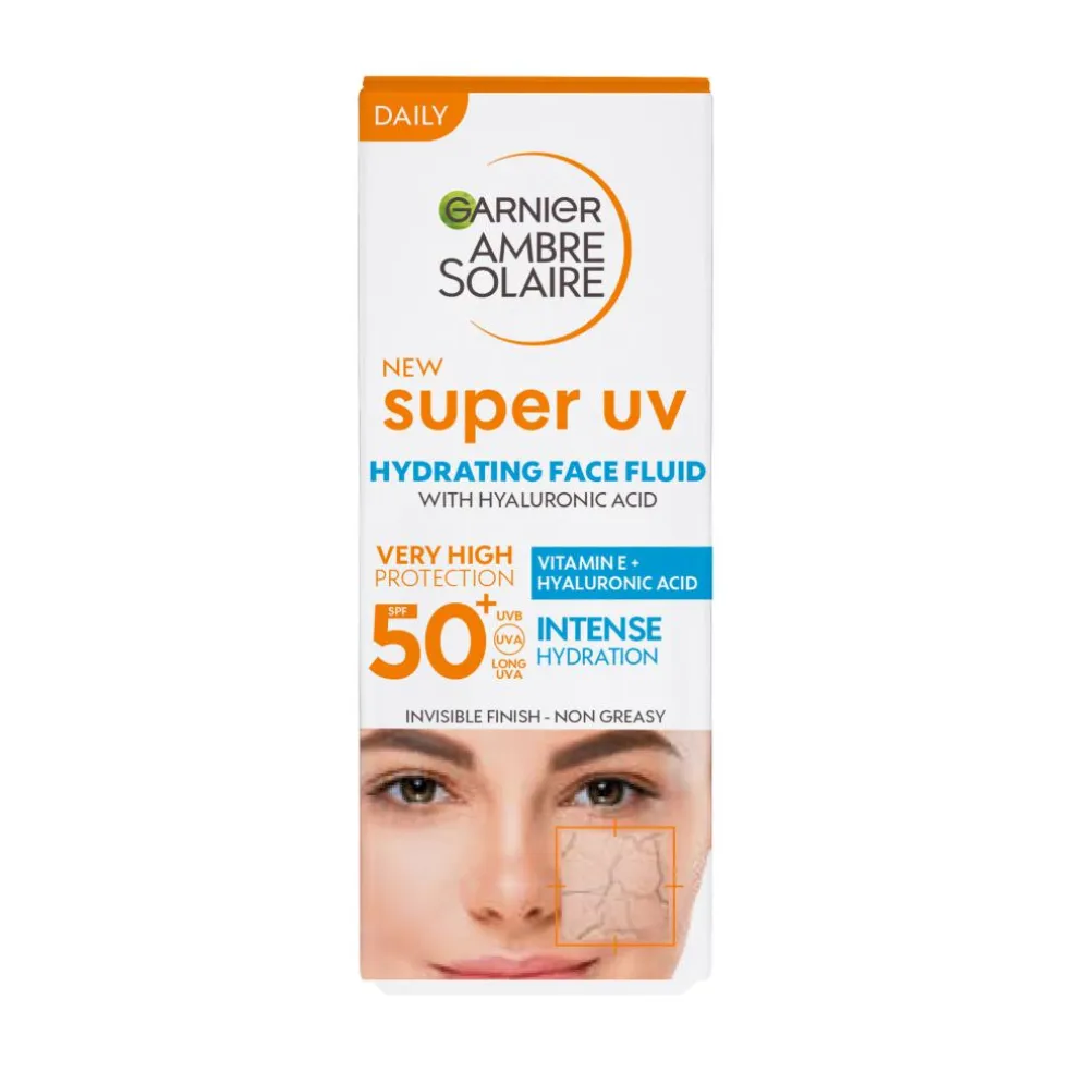 Vores super UV Fluid beskytter mod UVB, UVA og lange UV-stråler for at hjælpe til at modvirke mørke pletter og rynker som er forårsaget af solen.