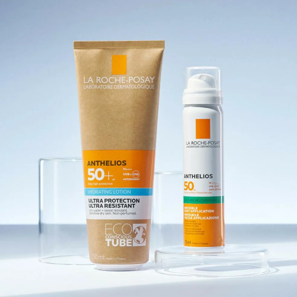 - Anti-glans-effekt. Ingen hvide mærker, vandresistent med høj, bredspektret, fotostabilt UVA- og UVB-beskyttelse