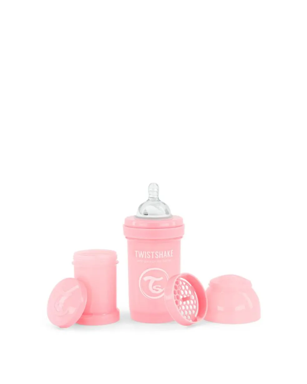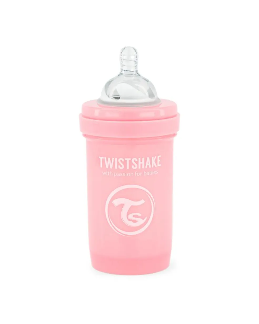 Med sin velovervejede form og det smarte design skaber Twistshakes sutteflaske en behagelig spisetid for dig og barnet. Flaskens form har det unikke TwistFlow anti-koliksystem, der har en luftventil og et mixer-net. Dette skaber et stabilt flow, der forhindrer unødvendig luft i at nå ned i barnets mave. Sutteflasken er fremstillet af PP-plast.