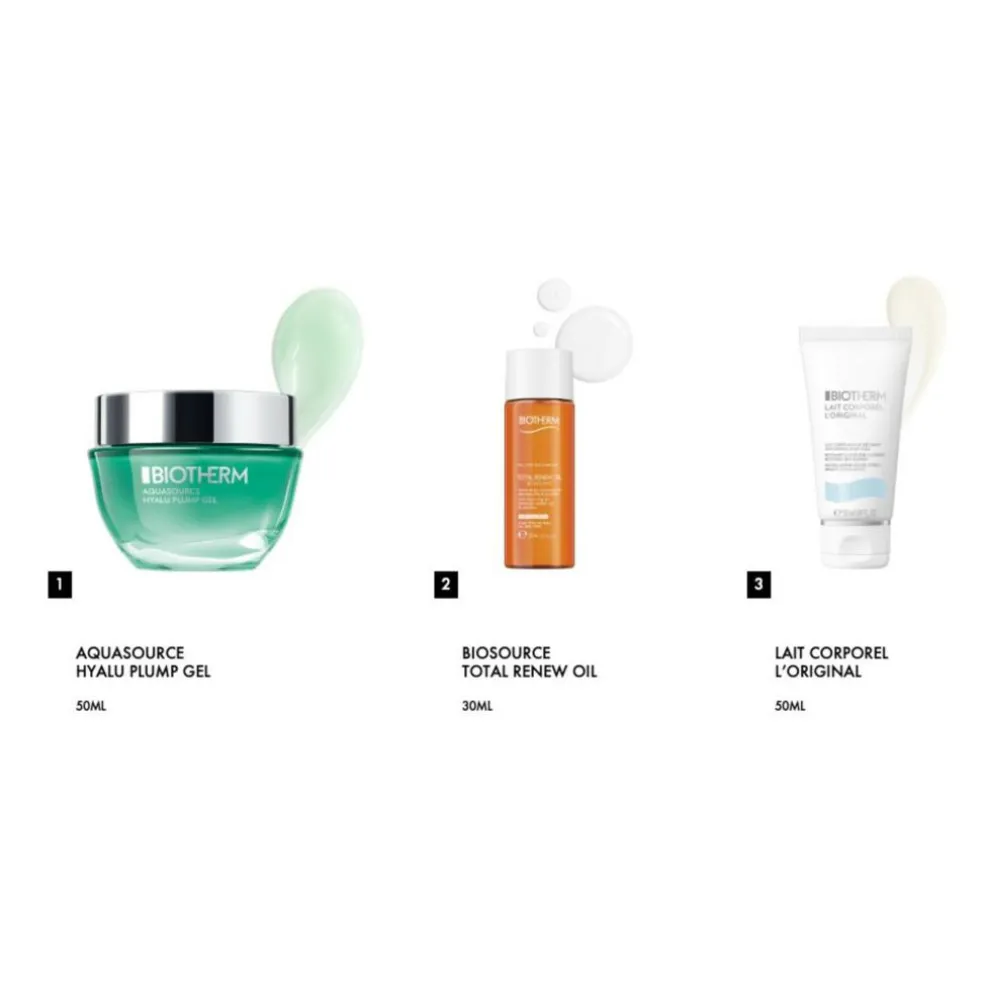 Med Aquasource Hyalu Plump Holiday Set får du en komplet hudplejerutine. Rens først med Total Renew Oil Cleanser for at få en smuk og velplejet hud. Afslut med at fugte med Aquasource Hyalu Plump Gel. Sættet indeholder også en Lait Corporel Body Lotion, som du skal bruge på kroppen efter du har været i bad.