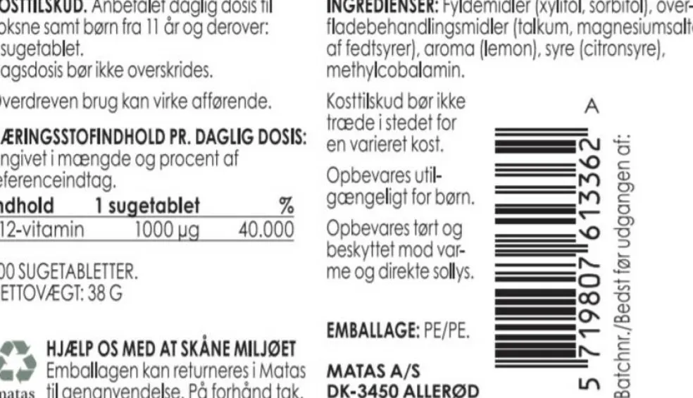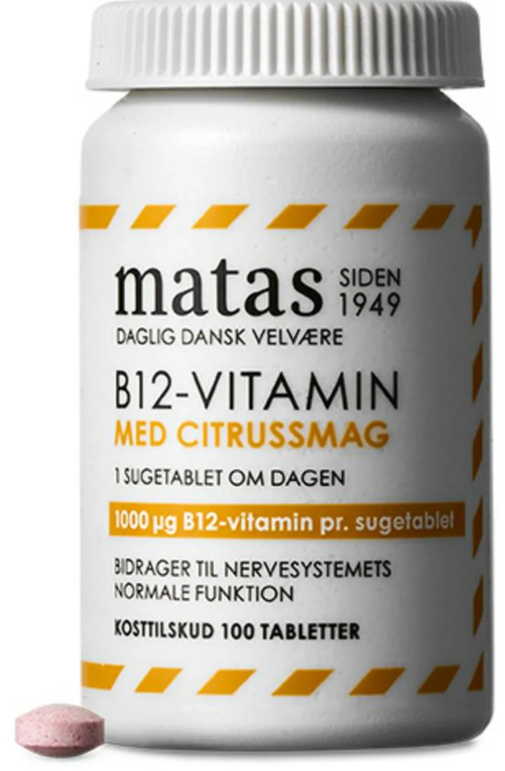 Matas B12-vitamin med citrussmag har et højt indhold af B12-vitaminer.