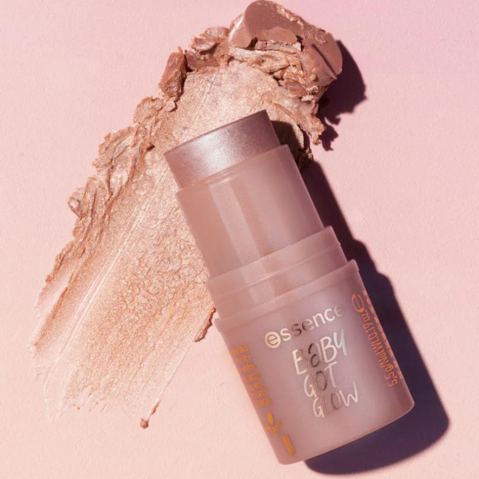 Glød på farten med essence BABY GOT GLOW highlighter stick 20 Rosy Glaze i en sød rosa tone og glødende finish! Denne pomadetekstur skaber et ikonisk glasagtig glød, og den smeltende formel er supernem at tone ud. Uanset om den bæres alene eller over makeup, skaber den en ren og glitrende glød, der klæder alle hudtoner. Den praktiske stift er perfekt til hverdagsbrug, og den behagelige duft tilføjer lidt ekstra glæde til din makeuprutine. En uundværlig tilføjelse til den elskede BABY GOT-serie – gør dig klar til glød! Cremet tekstur, der smelter ind i huden Diskret glød med en glasagtig, strålende effekt Velegnet til alle hudtoner og nem at tone ud Highlighter-stift.