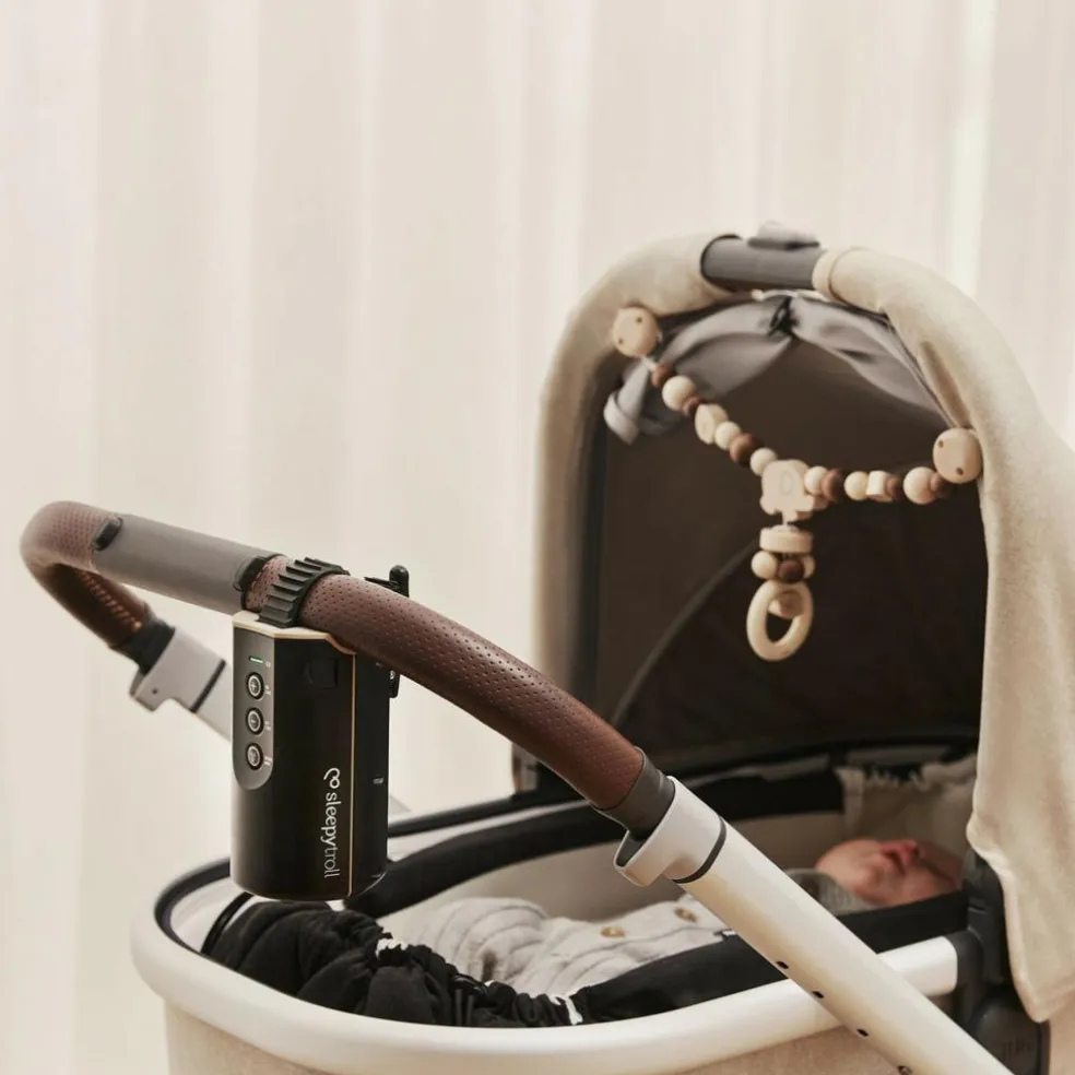 Sleepytroll er designet med alsidighed i fokus og passer problemfrit til barnevogne, tremmesenge* og skråstole*, hvor den leverer op til 3 timers beroligende bevægelse – alt sammen nemt styret via en brugervenlig app.