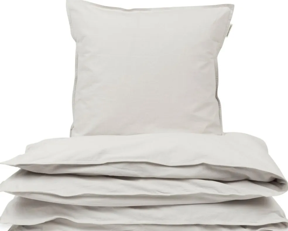 Pudebetræk i 40×45 cm med konvolutlukning og dynebetræk i 70×100 cm der lukkes med knapper.