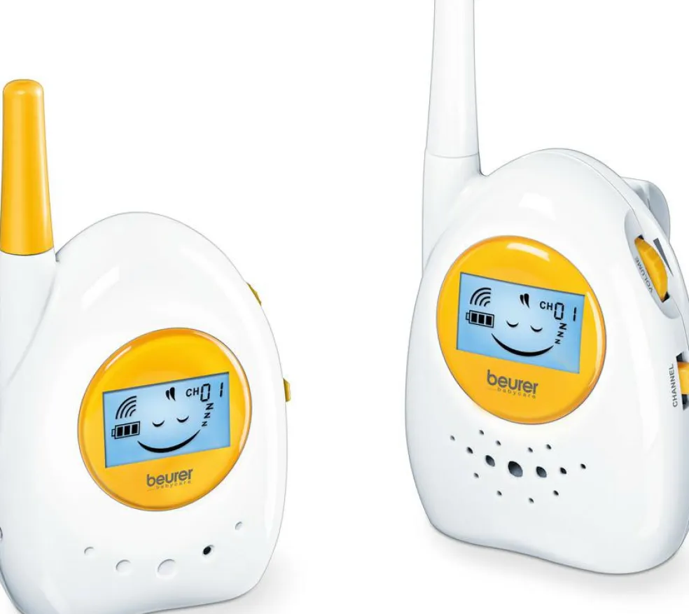 På displayet kan du også se den valgte kanal samt batteri- og støjniveau. BY 84 har EcoMode som gør alarmen energibesparende. Lydstyrken på forældreenheden samt lydfølsomheden på babyenheden kan trinløst justeres. Skulle det ske at alarmerne kommer uden for hinandens rækkevidde, vil alarmen give et lydsignal.