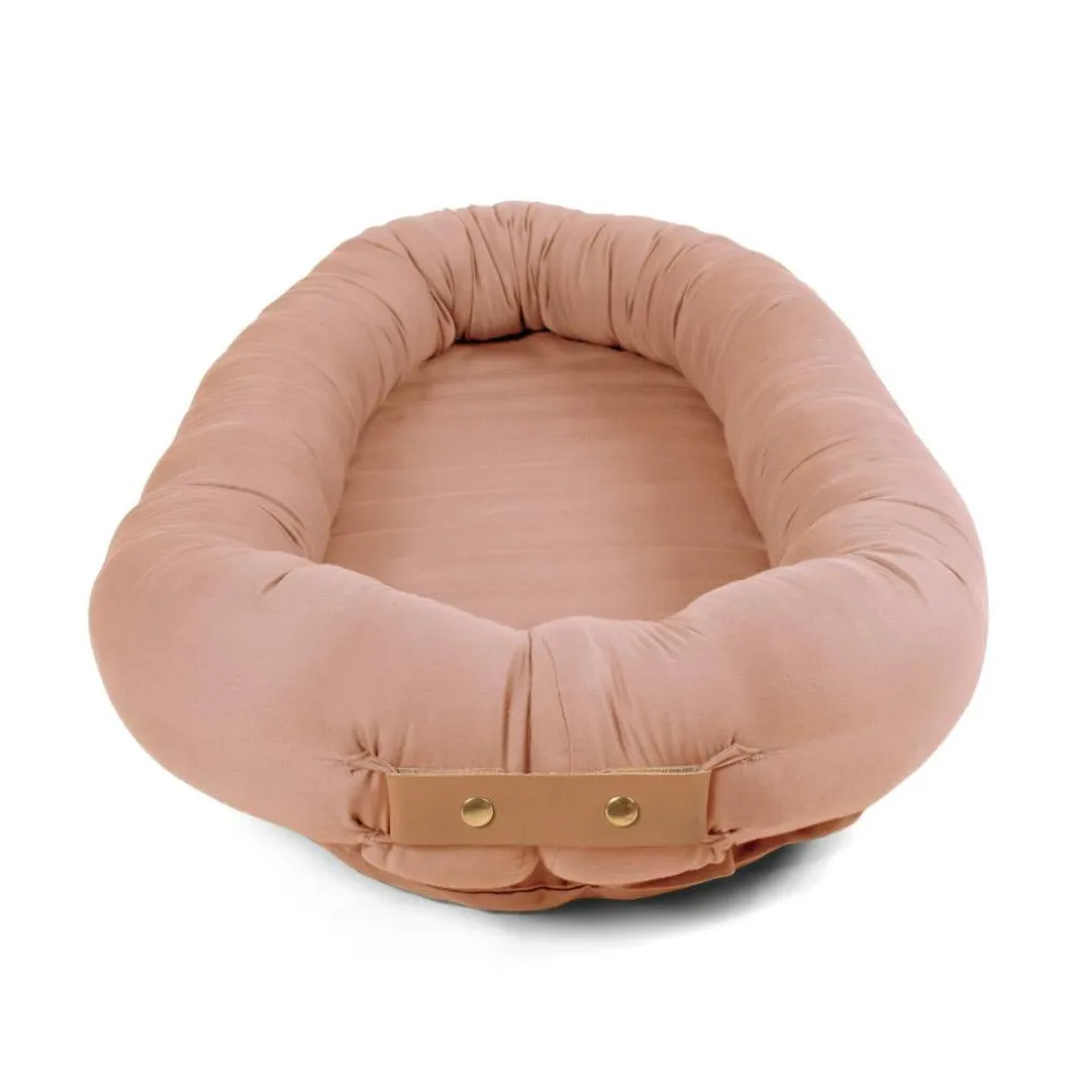 Babynesten er designet med flere funktioner, så du kan bruge den i længere tid. Babynesten kan åbnes i fodenden ved at klikke læderstroppen af. Dette giver et længere liggemål til babyen, som stadig har brug for at føle sig tæt omsluttet.