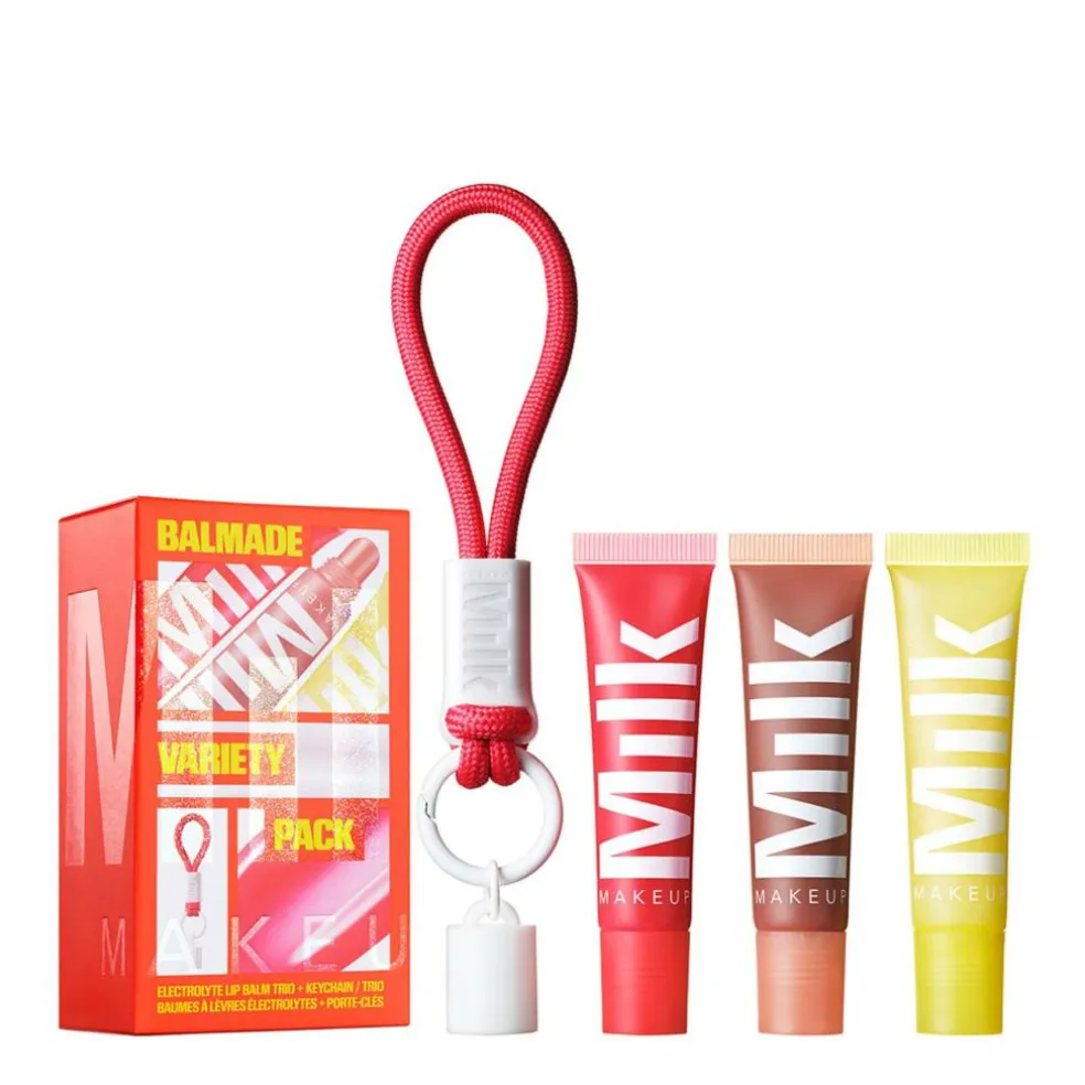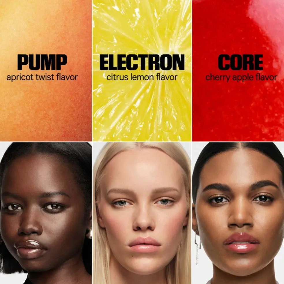 Disse rene, ikke-klæbrige og fugtgivende læbepomader smelter ind i læberne med en let farvetone og findes i tre forfriskende smagsvarianter inspireret af sportsdrikke: Electron (en citrus- og citronfarvet multiglitter), Pump (en varm beige abrikos) og Core (en let rød kirsebær- og æblefarve, som kun findes i dette sæt).