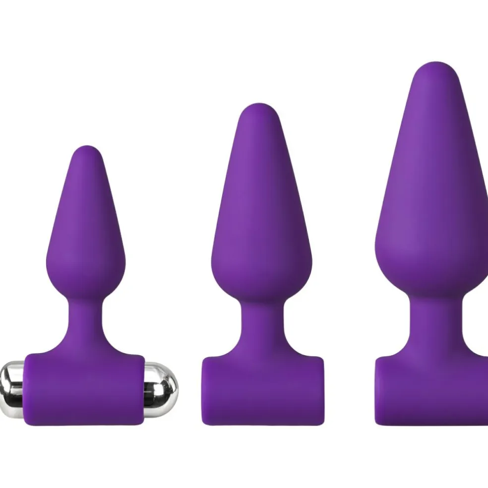 Sættet indeholder 3 butt plugs i forskellige størrelser, der alle har en smal spids for nem indføring og en T-formet base, der sikrer, at de bliver på plads. Gør oplevelsen endnu mere pirrende ved at tilføje den lille bullet vibrator, der har 7 intense vibrationsmønstre.