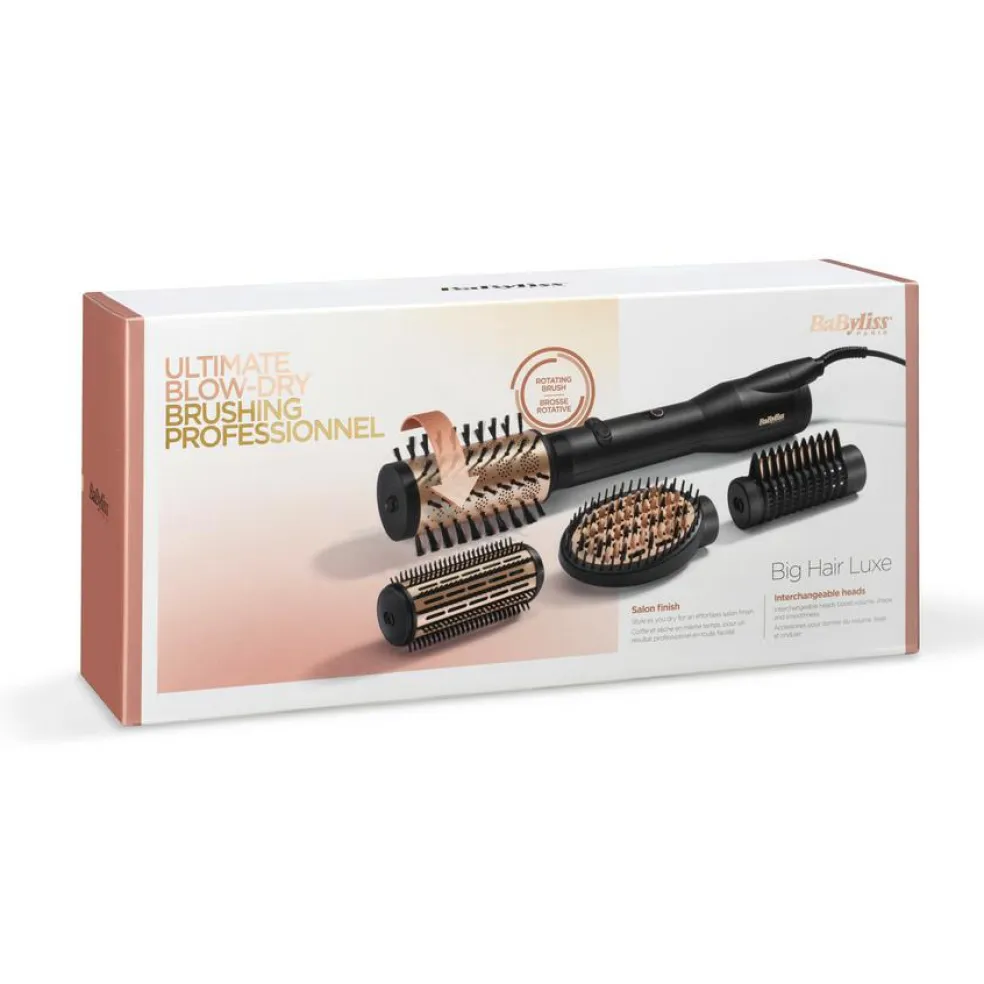 BaByliss Big Hair Luxe er din ultimative stylingpartner til et perfekt, føntørret salonlook! Den roterende varmluftsbørste er ideel til alle årstider og hjælper med at bekæmpe krus og tilføre glans, takket være den innovative ionteknologi. Opnå et sundt og glansfuldt look uanset vejret.
