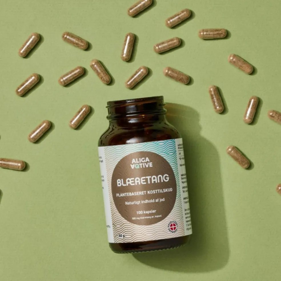 Blæretang har et højt indhold af jod, der blandt andet understøtter skjoldbruskkirtlens normale funktion og hormonproduktion, hvilket er vigtigt i relation til kroppens stofskifte. I den anbefalede daglige dosis får du dækket 123 % af det daglige referenceindtag for Jod.