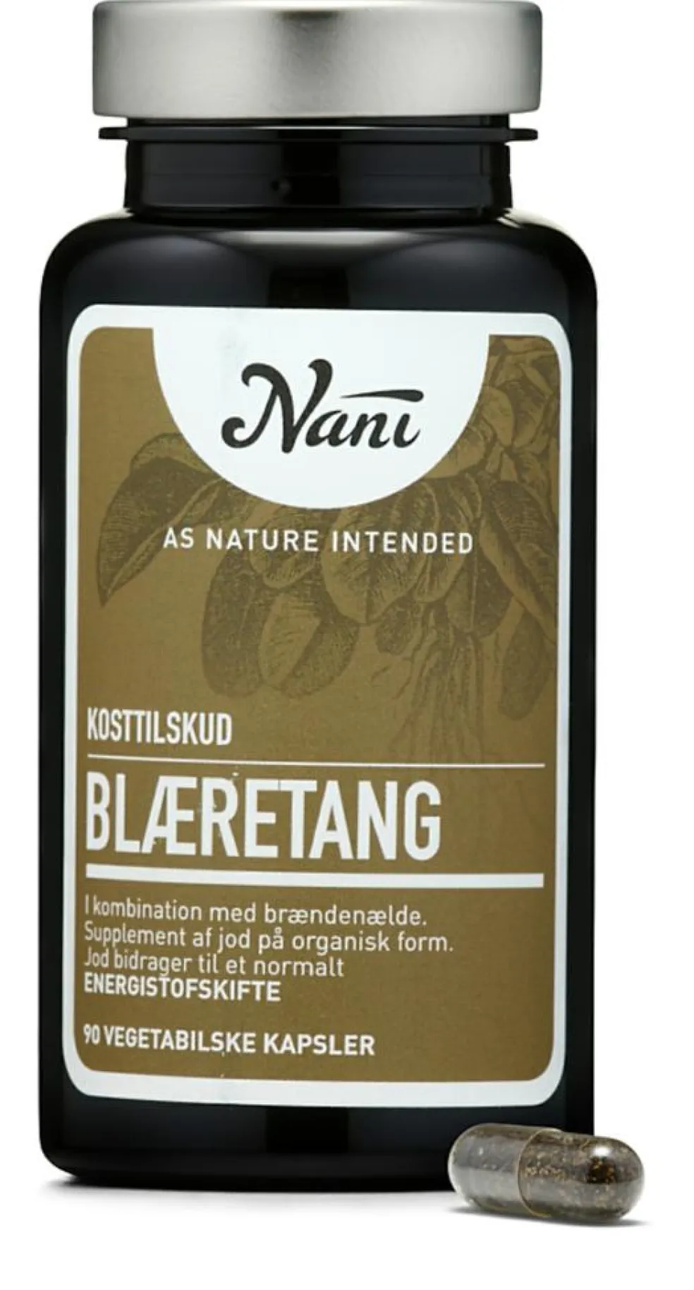 Blæretang er naturlig rig på organisk bundet jod, der bl.a. bidrager til et normalt energistofskifte og til vedligeholdelse af normal hud.