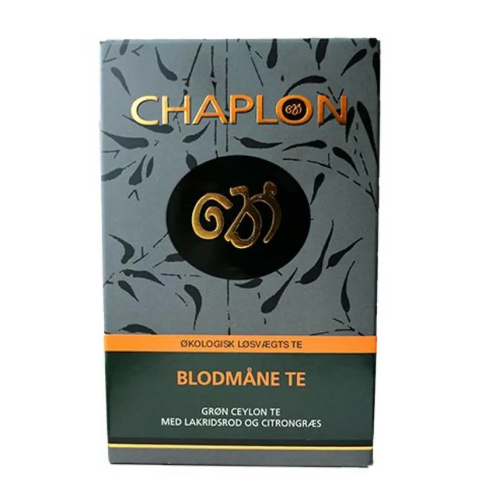 Chaplon Blodmåne te er grøn ceylon te kombineret med lakridsrod, fennikel, anis og lemongræs, som sammen med de flotte røde gojibær og fine røde chiliflager har inspireret til navnet på teen.