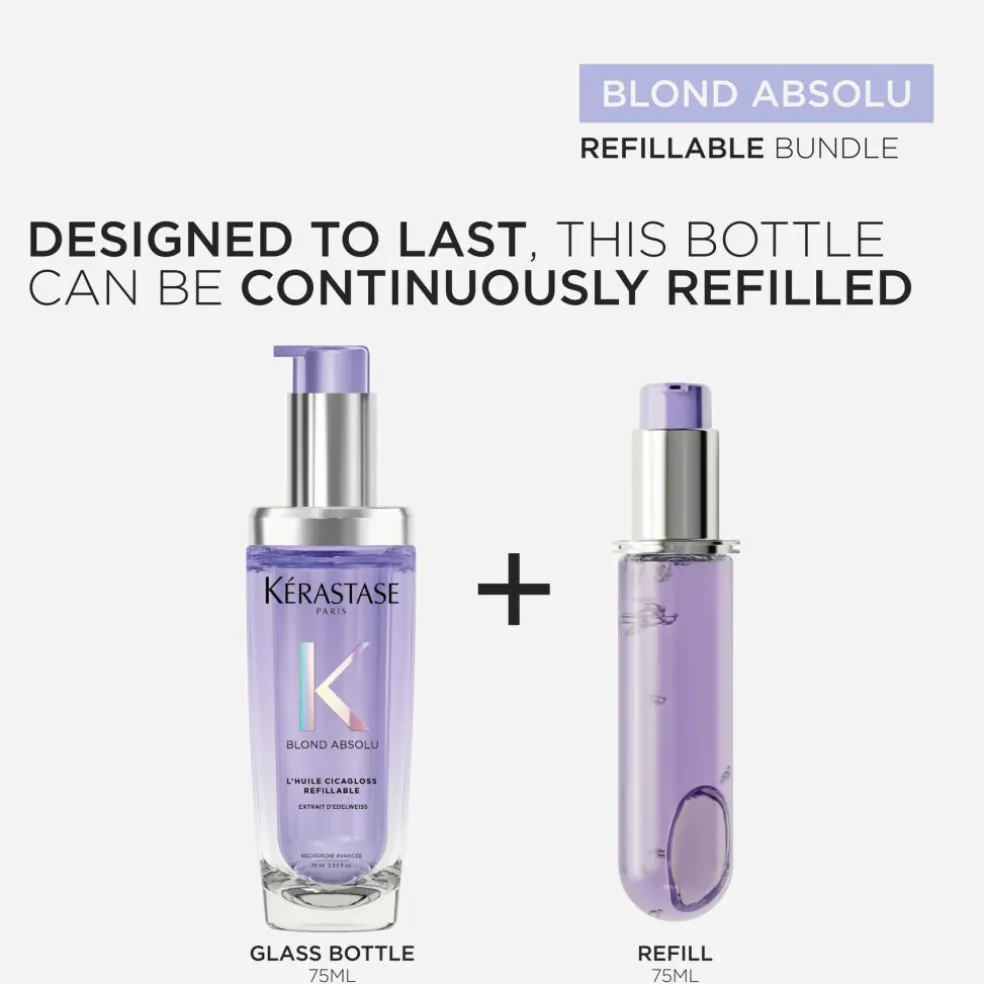 Olien er nu genopfyldende og kommer i to dele: en flaske lavet af 30 % genanvendt glas og en refill lavet af 95 % genanvendt plast.