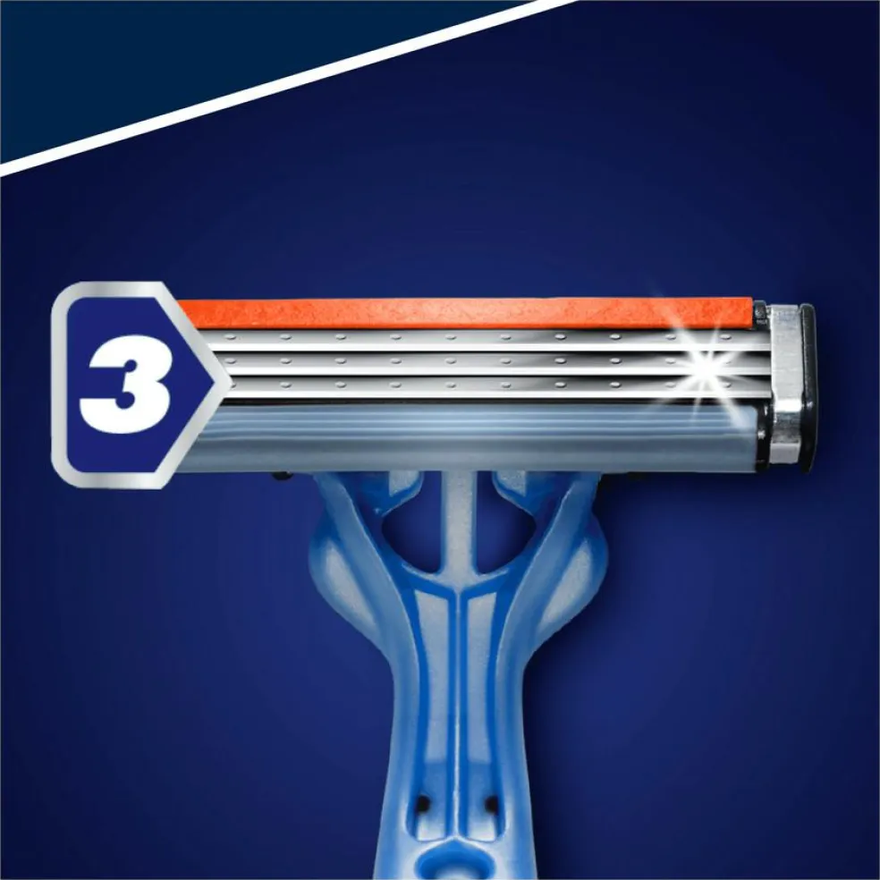 En perfekt barbering er inden for din rækkevidde med Gillettes Blue3-engangsskraber til mænd. Med lubrastrip, 3 blade, der læser din hud, håndtag til rigtig god kontrol og et 40° bevægeligt hoved, der tilpasser sig konturerne i dit ansigt.