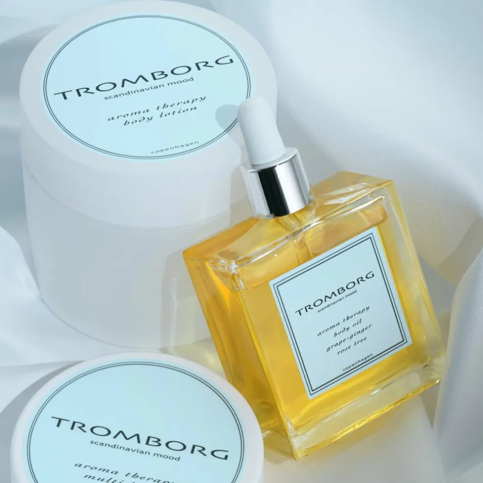 Tromborg TB Aroma Therapy Body Oil Grape Ginger Rose Tree 100ml fra Tromborg er ren aromaterapi for krop og sjæl – velduft og fugt i ét. Især i de kolde vintermåneder, hvor huden har tendens til at blive tør, er denne olie en sand velsignelse. Den rige blanding af æteriske olier og nærende planteolier genopretter hudens naturlige balance og efterlader den blød og smidig. Giv den som en skøn julegave, adventsgave eller værtindegave til én, der fortjener lidt ekstra forkælelse.
