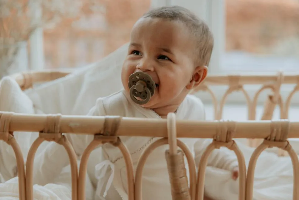 Det klassiske runde skjold med en rund nippel af naturgummilatex sikrer, at dit barn beroliges på en sikker og naturlig måde.
