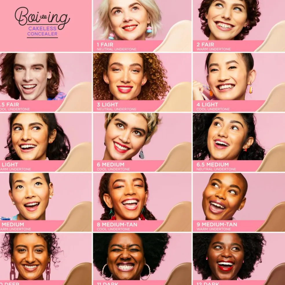 Vores flydende concealer, Boing concealer, dækker effektivt alt fra mørke rander under øjnene til urenheder, ujævnheder og fine linjer.