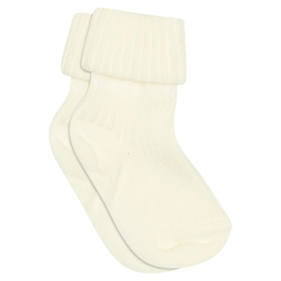Strømperne er lavet med en foldet detalje i kanten, og Ribstrukturen sikrer høj elasticitet i anklen, så sokkerne passer til alle slags Babyfødder.