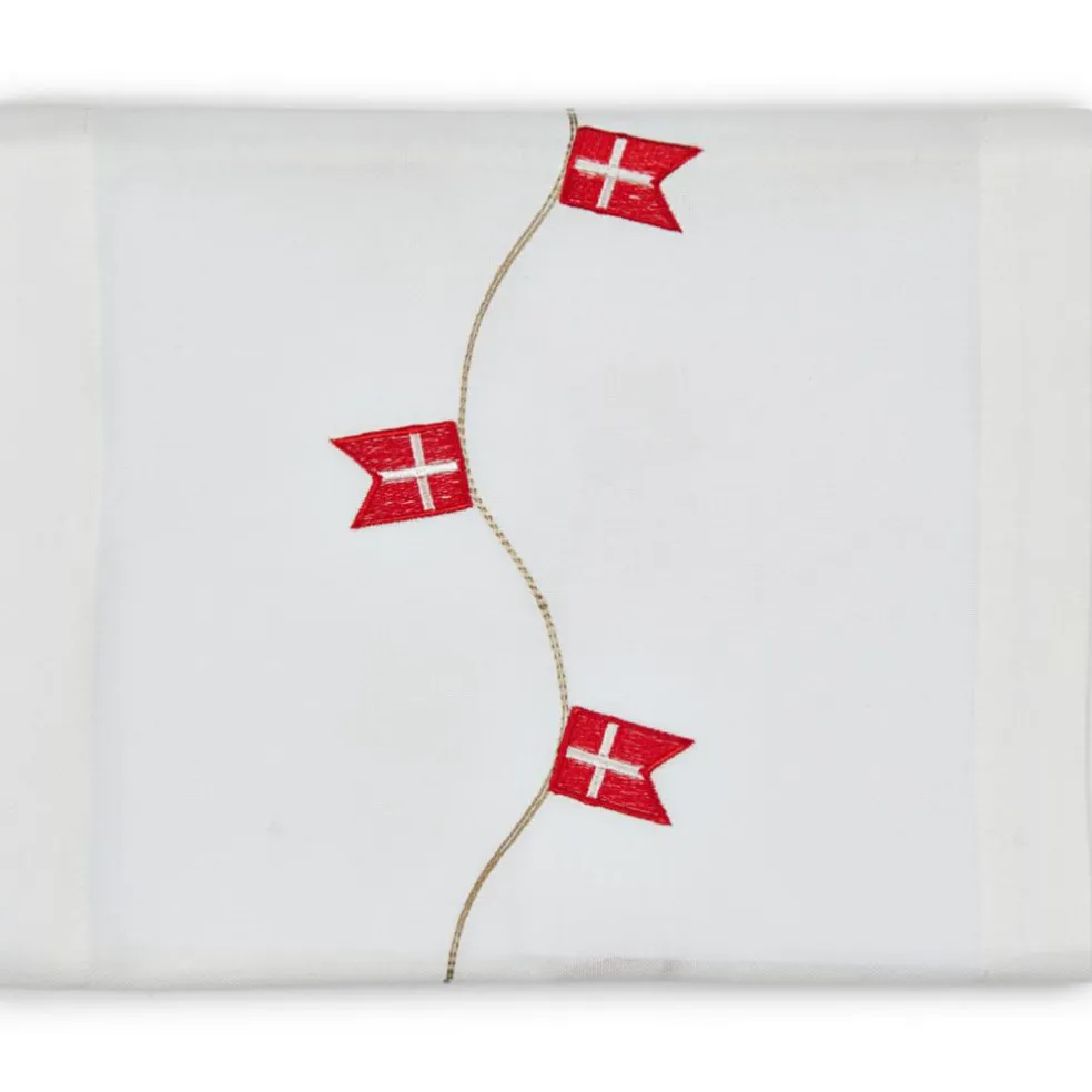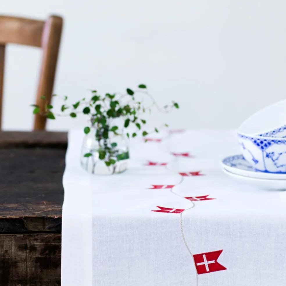 Bordløberen måler 30 x 300 cm og leveres i en smukt broderet stofpose. Kan maskinvaskes og krøller meget lidt.