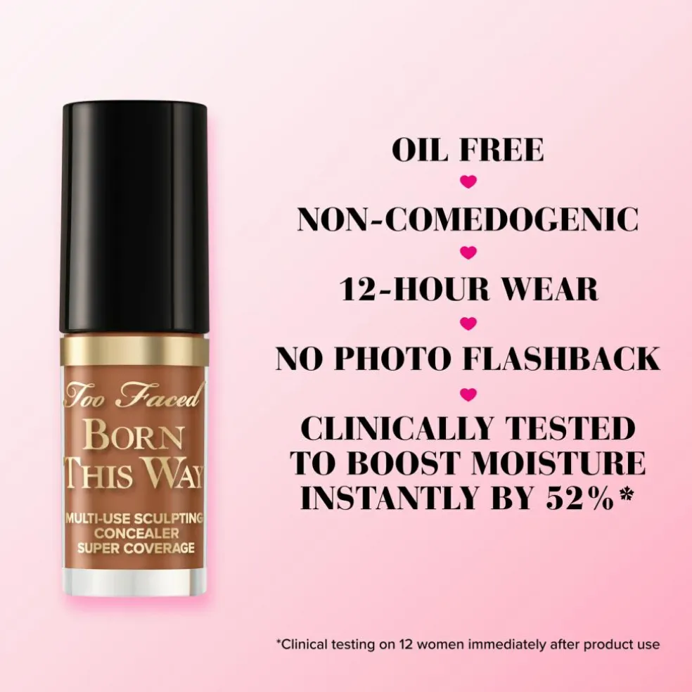 Oplev den lette og behagelige følelse, som Too Faced Born This Way Super Coverage Concealer giver, og lad din hud stråle med selvtillid.