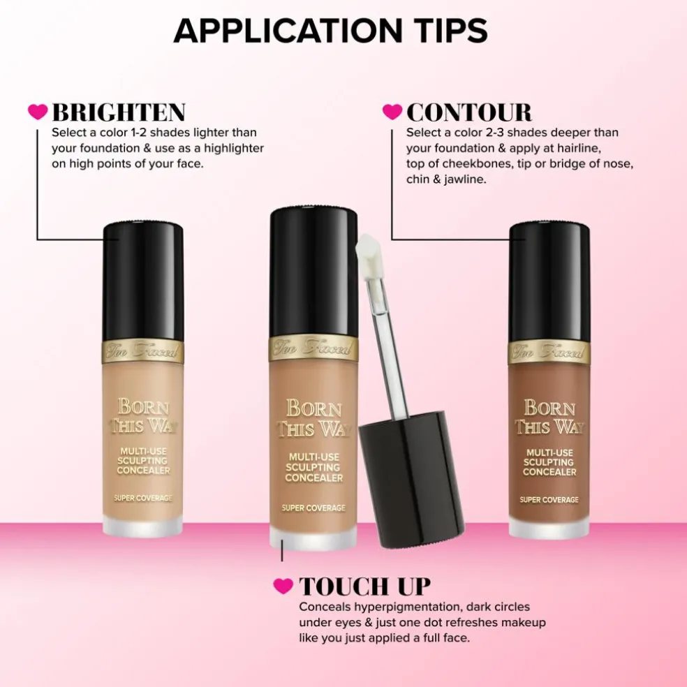 Too Faced Born This Way Concealer er perfekt til daglig brug og kan anvendes som en del af din makeup-rutine. Den flydende konsistens gør det nemt at påføre produktet med en pensel eller fingerspidserne.