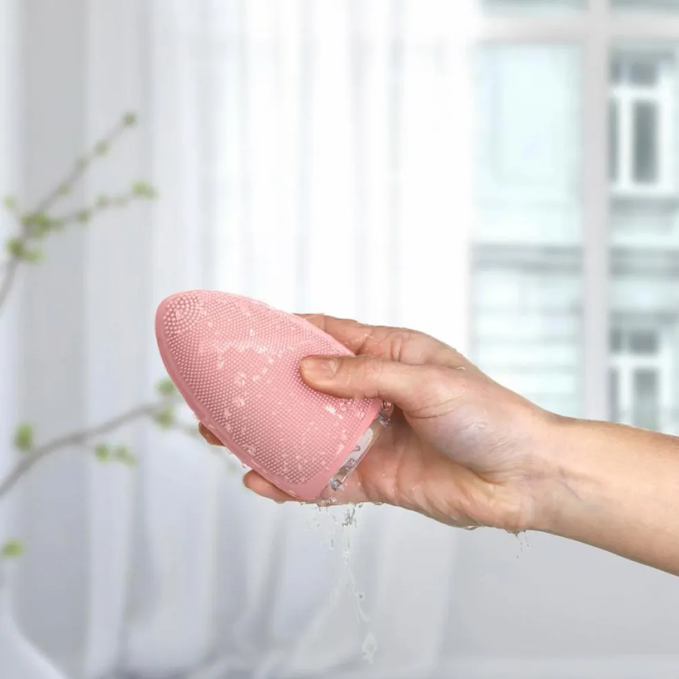 Den fjerner snavs og makeuprester på sekunder, renser porer og exfolierer nænsomt. Hudens blodcirkulation bliver forbedret, hvilket resulterer i en sund, ferskenagtig glød.