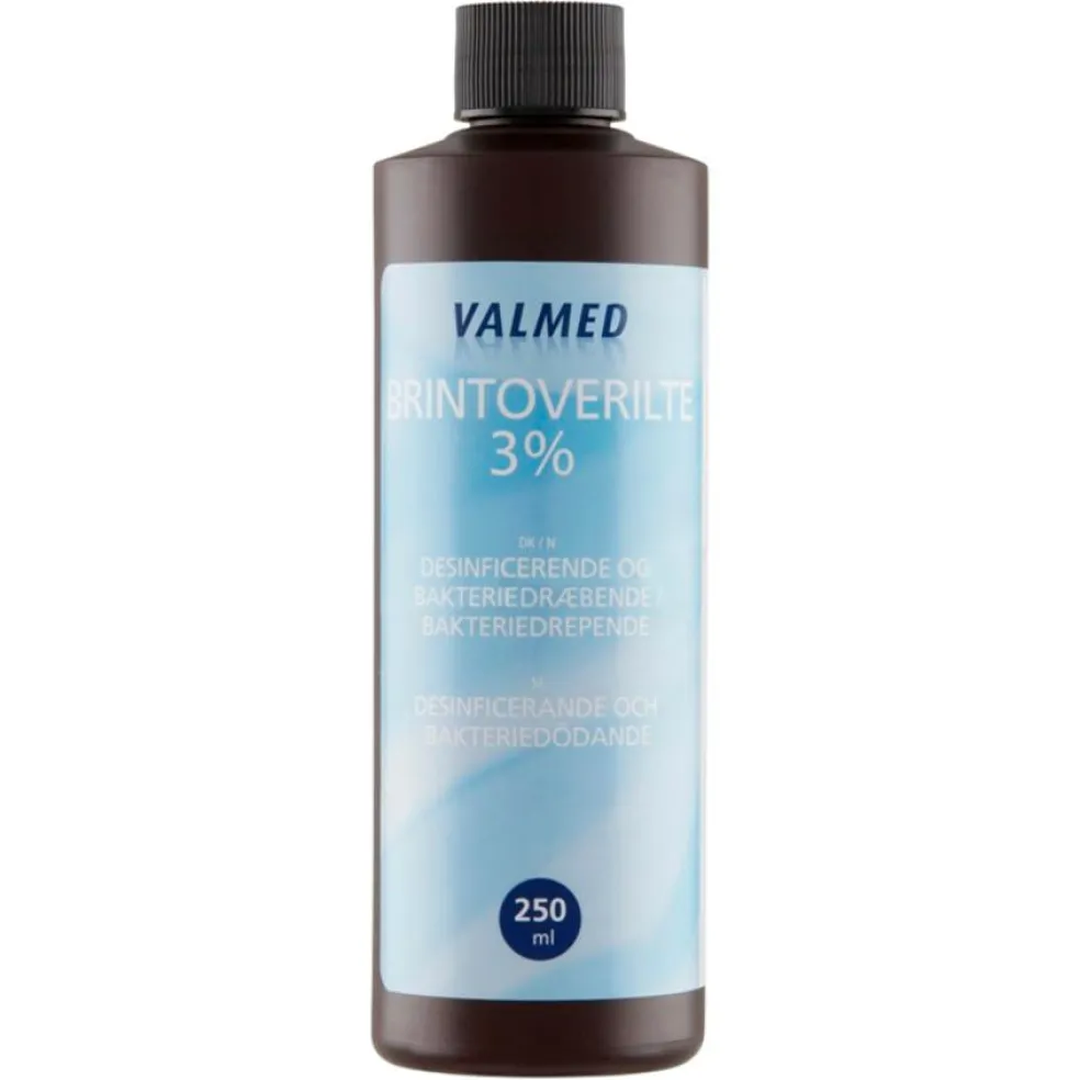 ValMeds Brintoverilte 3% er en effektiv, desinficerende og bakteriedræbende væske, som er yderst velegnet til desinfektion og rensning af både sår og hud.