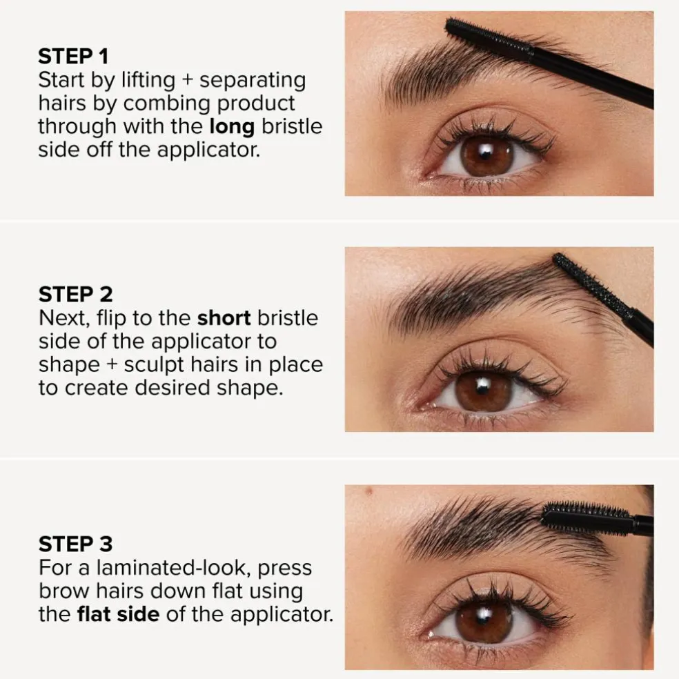 Den dobbeltsidede applikator former og sætter brynene med ekstremt hold og præcision når du er på farten. Opnå løftede bryn med et lamineret look og plejende frozen-teknologi.