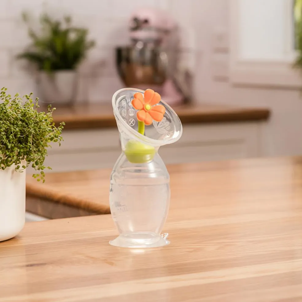 Med denne brystpumpe medfølger en blomster-stopper, undgår du spild og sikre at indholdet ikke bliver forurenet af støv og snavs.