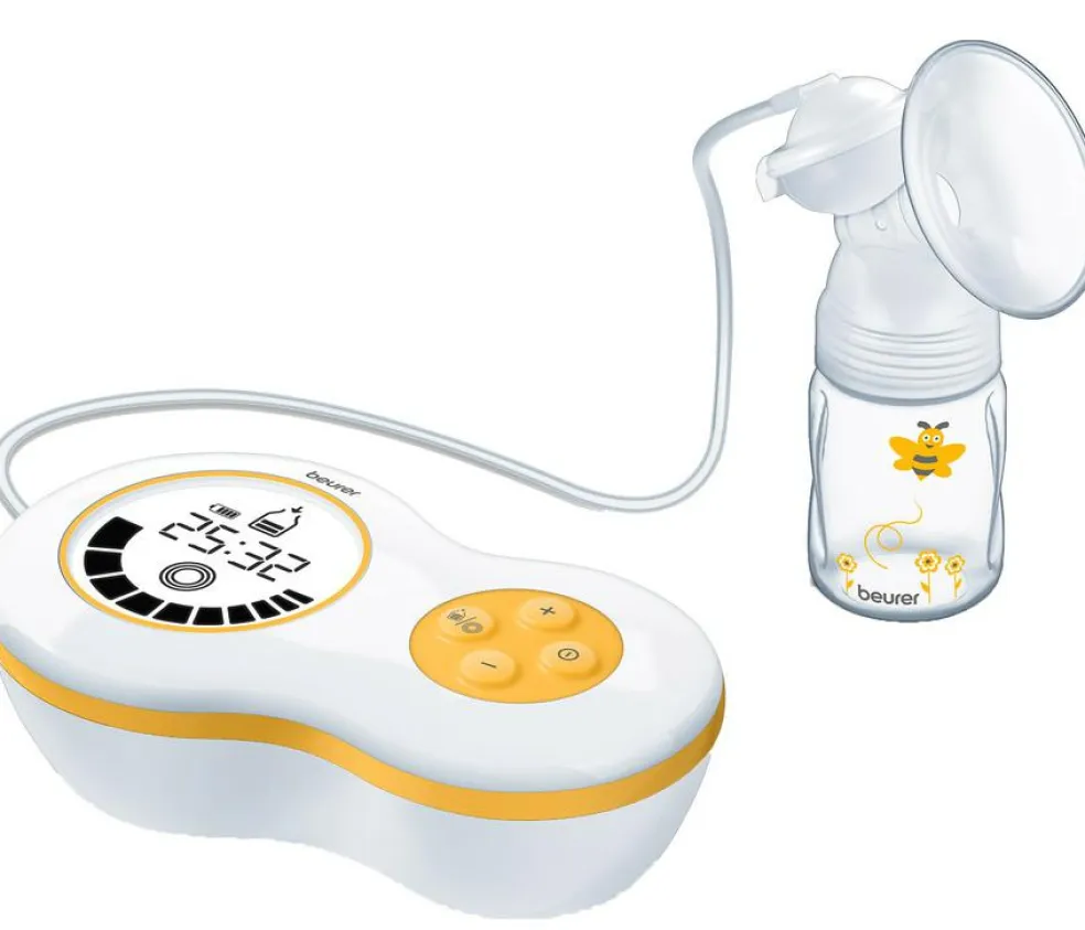 BY 40 kan både bruges ved at tilslutte den til stikkontakt eller ved at isætte de medfølgende batterier. Det kompakte design gør, at du nemt kan tage den med dig. Brystpumpen er også lydsvag; på højeste pumpeniveau er lyden kun 45 dB på 1,5 meters afstand. Pumpeenheden står på skridsikre gummifødder. BY 40 er et medicinsk produkt.