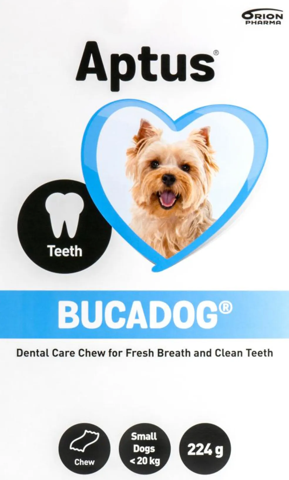 Giv hunden en tyggelap dagligt efter hovedmåltidet. For at opnå det bedste resultat anbefaler vi, at tyggelapperne kombineres med regelmæssig tandbørstning med Aptus Bucadog enzymbaseret tandgel.