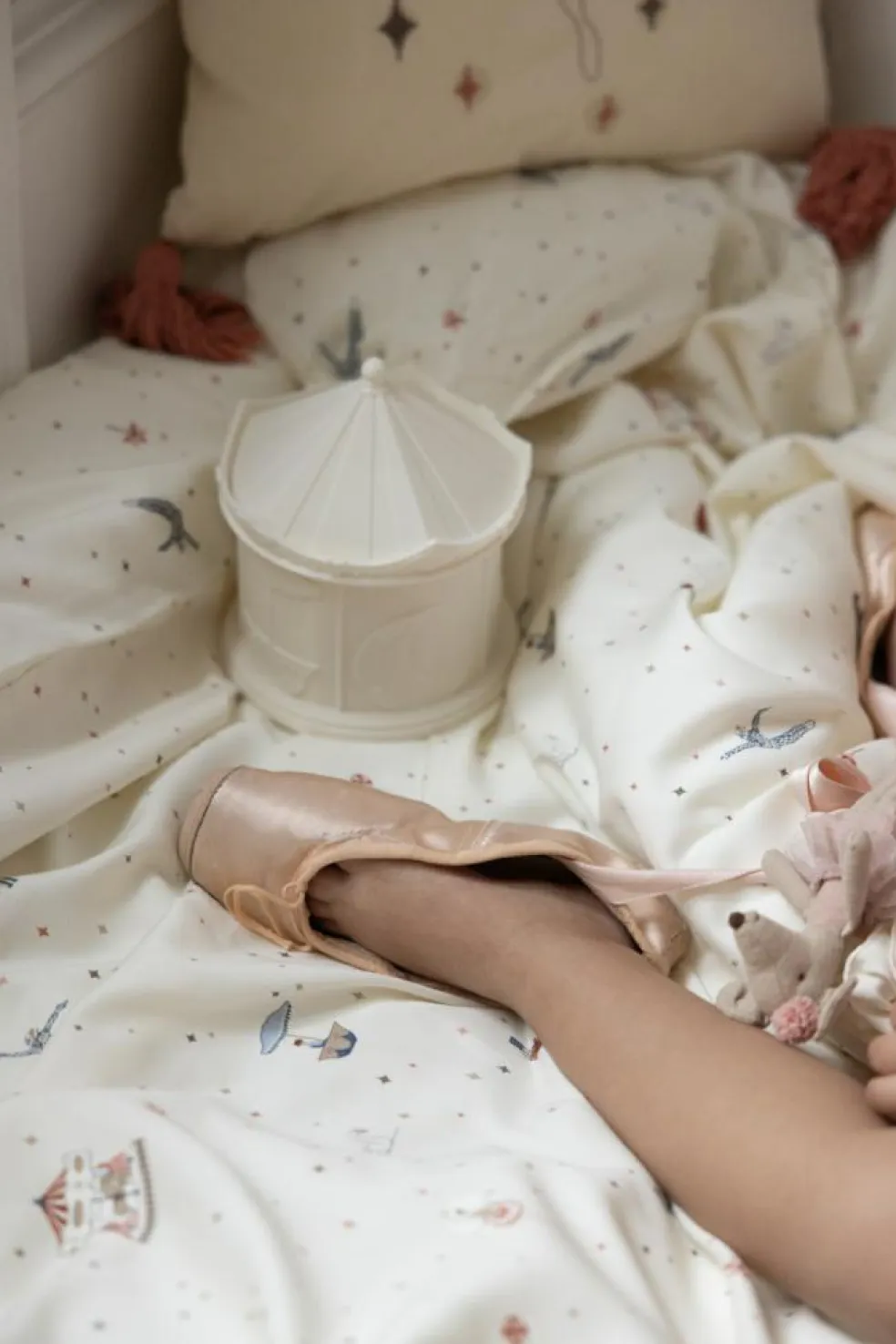 Tilføj en varm glød og et strejf af magi til dit barns værelse med den eventyrlige Karrusel Natlampe, der både tjener som fin dekoration på børneværelset om dagen og beroligende ven om natten. Med sit dæmpede lys og blide glød, spreder natlampen hygge og ro, og dens finurlige motiver, inspireret af vintage karruseller, vækker eventyrlige drømme. Perfekt til sengetid, stille aftener eller som et blidt lys til puslebordet og natlig amning/flaskegivning. Lampen er nem at betjene – tænd den ved at trykke på knappen nedenunder, og aktiver farveskiftefunktionen ved at klemme lampen forsigtigt. Hvis du ønsker at beholde lyset i en specifik farve, skal du blot klemme den blidt igen. Natlampen har et genopladeligt batteri med en levetid på 10 -11 timer, opladningstid via USB er 3 timer. En oplagt gaveidé til babyshowers, dåbsgaver og fødselsdage.