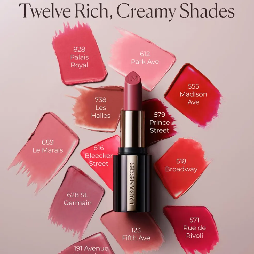 Vælg mellem 12 smukke nuancer, der kan genopfyldes, fra hverdagsnuancer, pink og brun til dristige røde og koralfarvede nuancer til alle lejligheder og hudtoner.