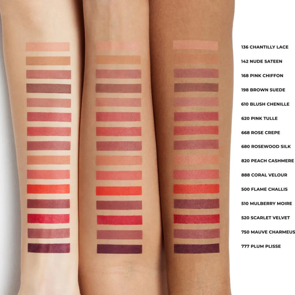 Caviar Smoothing Matte Lipstick giver 16 timers fugtgivende og behagelig farve. Et enkelt farvestrøg giver stor effekt og fuldt dækkende farve, der holder uden behov for touch-ups.