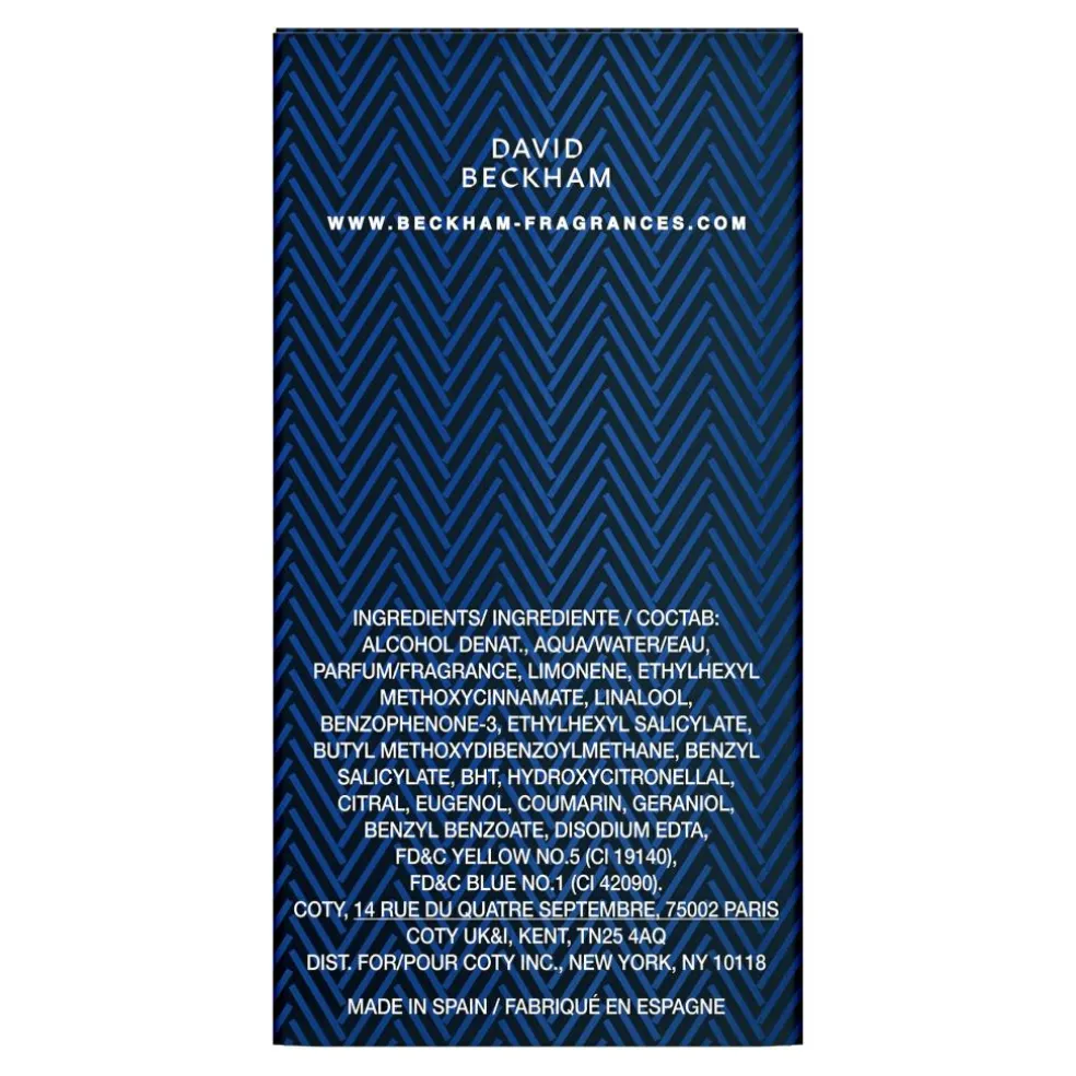 Selve duften i denne David Beckham Eau de Toilette har en smuk, himmelblå farve og præsenteres i en sofistikeret, mønstret glasflakon med en elegant, metalblå hætte.