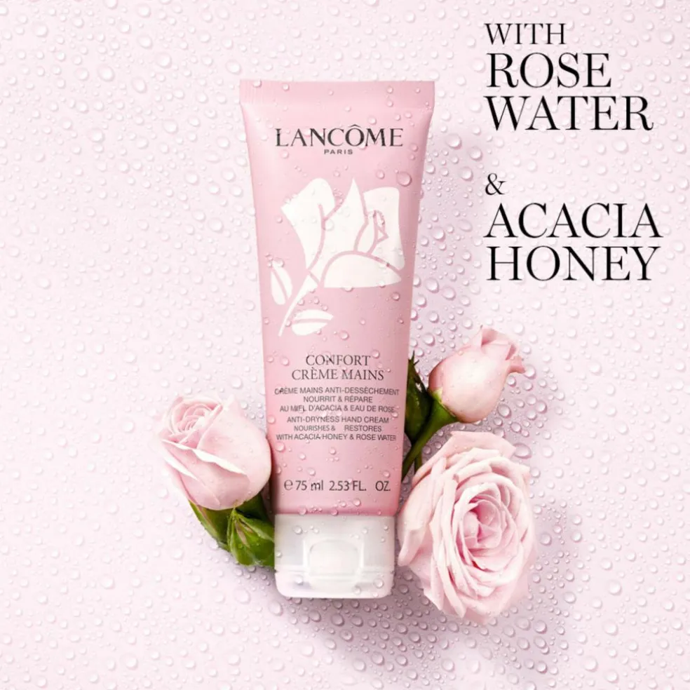 Cremen kombinerer akaciehonning med Lancômes karakteristiske rosenvand.