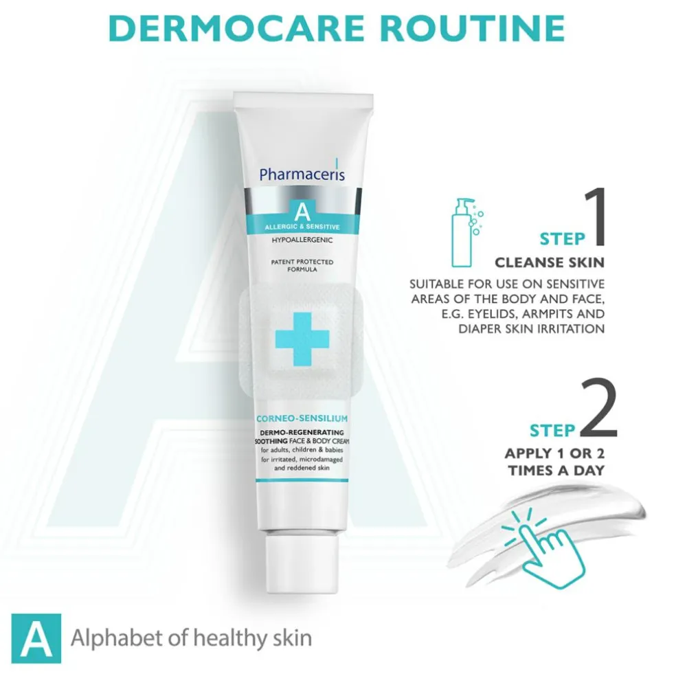 Den patenterede creme består af ingredienser, som reparerer den beskadigede epidermis. Den blide formular genopretter epidermis fysiologiske tykkelse, eliminerer enhver tørhed og ruhed og reducerer tendensen til overfølsomhed.