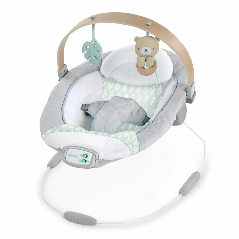Skråstolen er udstyret med volumenkontrol og slukker automatisk. Cozy Spot tilbyder en behagelig og sikker plads til din baby og er udstyret med aftagelig hovedstøtte og en 3-punktssele.