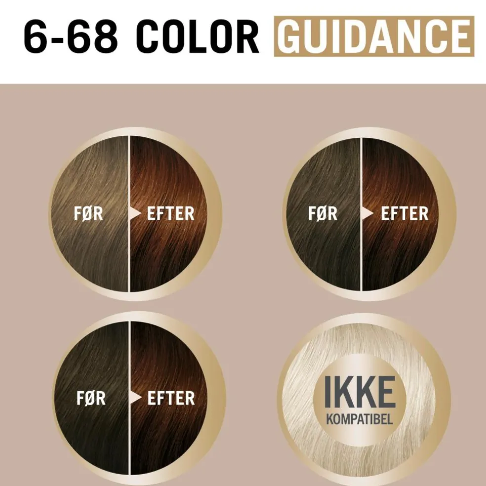 Anvendelse: Følg sikkerhedsinstruktionerne i brugervejledningen eller videovejledningen, der er tilgængelig via QR-koden. Denne nuance er beregnet til lysebrunt til mørkebrunt hår. Vælg den lysere nuance, hvis du ikke kan vælge mellem to nuancer. Denne nuance er beregnet til op til 80% gråt hår. Farveresultatet afhænger af din naturlige hårfarve.