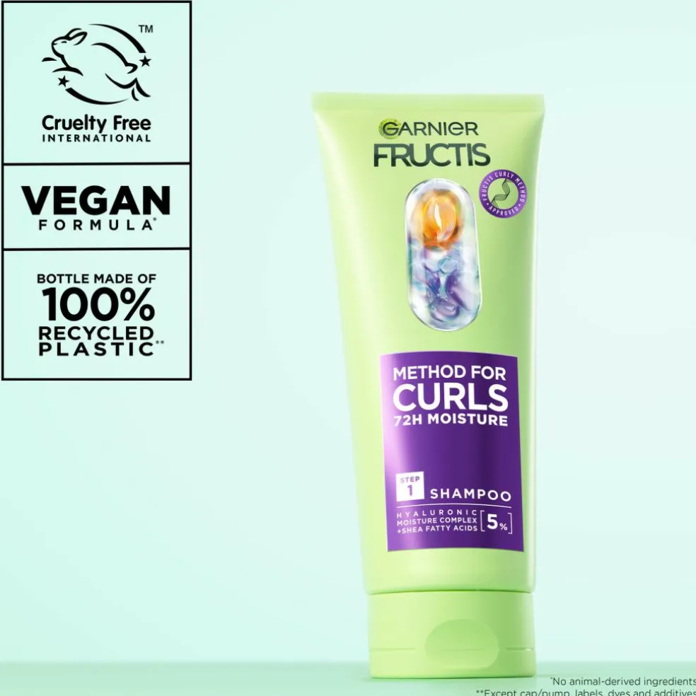 Testet på forskellige typer krøller, Curly Fructis Method-godkendt! Fuldfør rutinen med Fructis Method for Curls N°0 fugtgivende pre-shampoo, n°2 intenst fugtgivende maske og n°3 opfriskende spray.