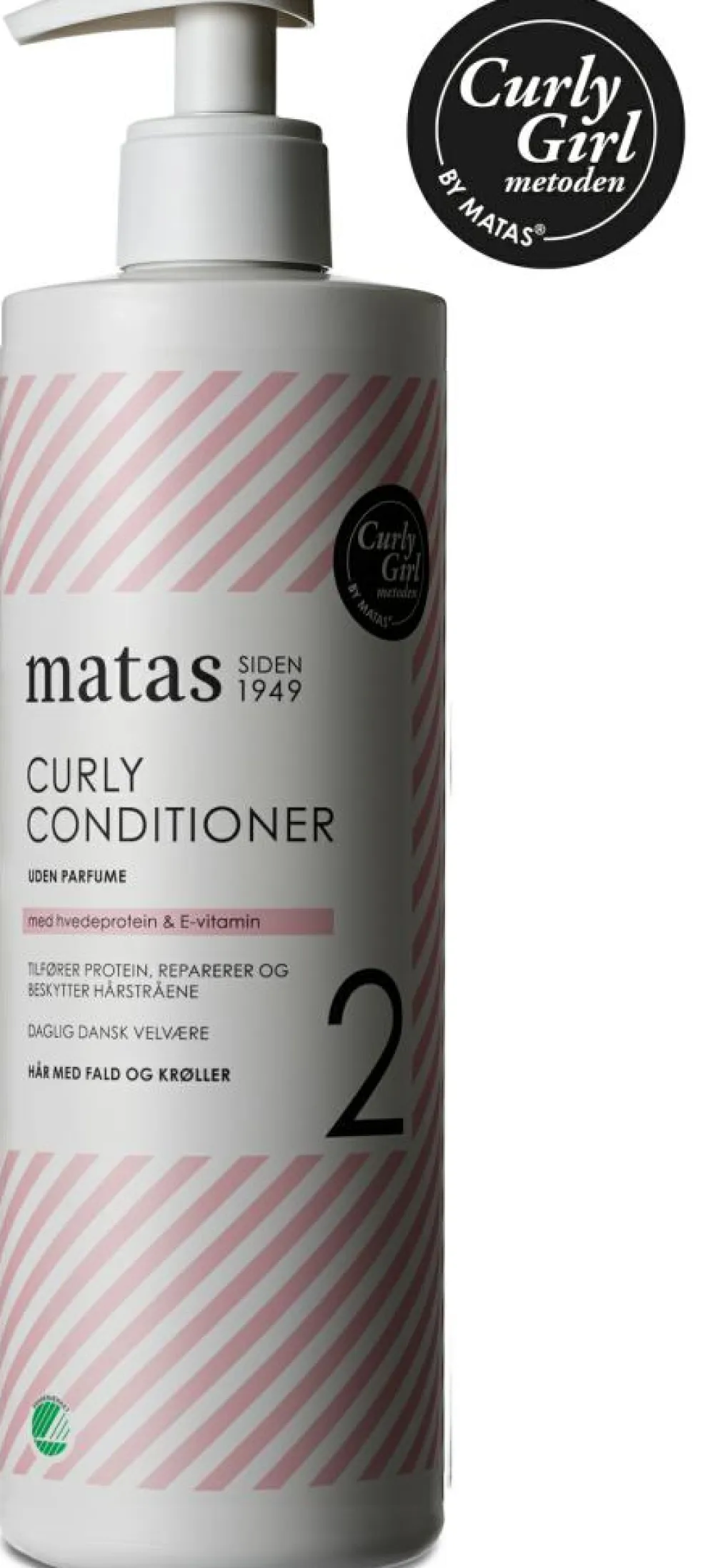 Alle Matas Curly produkter er godkendt til Curly Girl metoden. Conditioneren er ideelt til et hår der i balance, fordi den er beriget med fugtgivende ingredienser og en lille mængde hvedeprotein.