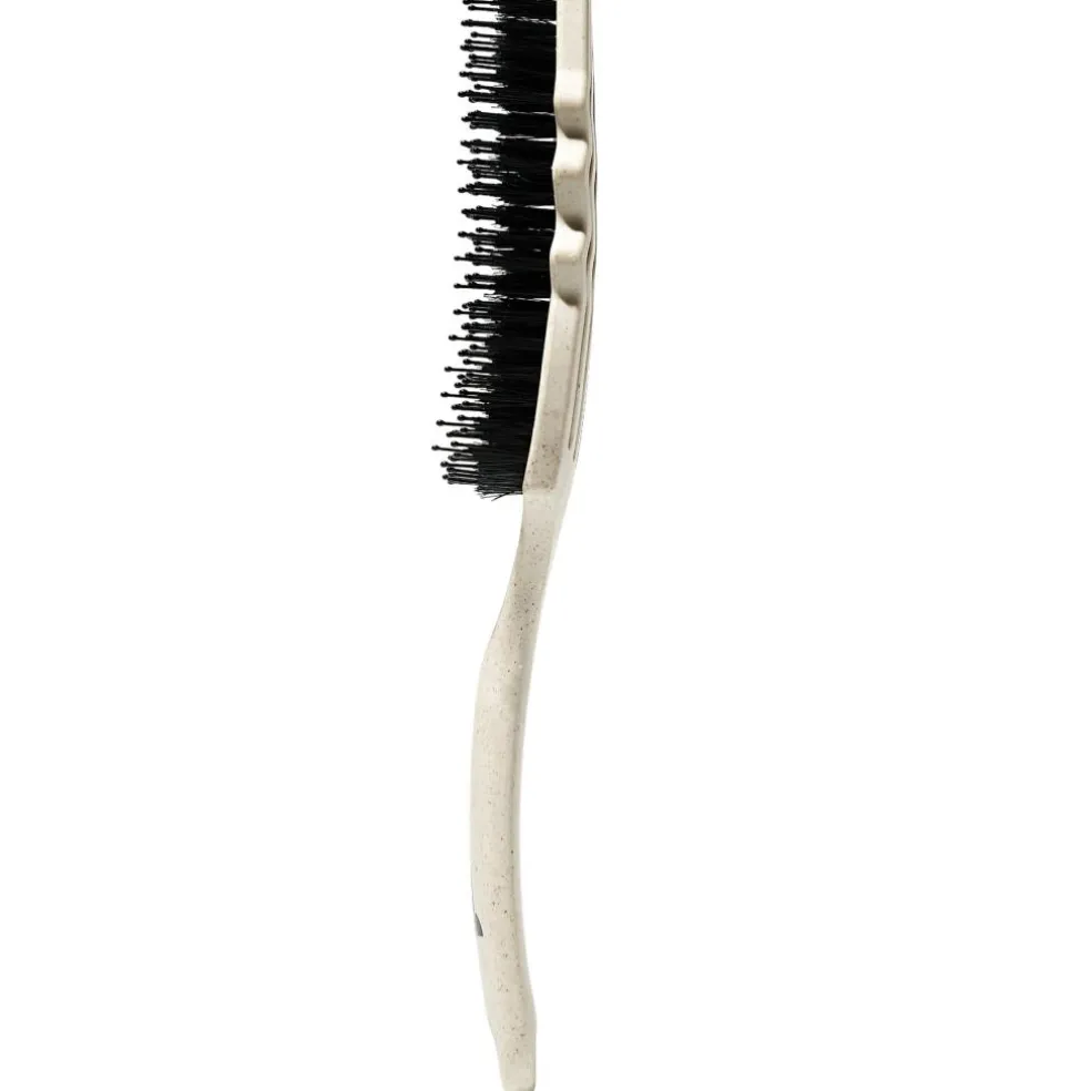 Den buede form tilpasser børsten sig din hovedbunds naturlige kurve, hvilket sikrer en jævn trykfordeling og minimerer risikoen for hårbrud og ubehag. De bløde, veganske børstehår, kombineret med avanceret No-Tug Technology, giver en næsten smertefri oplevelse – selv når håret er ekstra svært at rede ud.