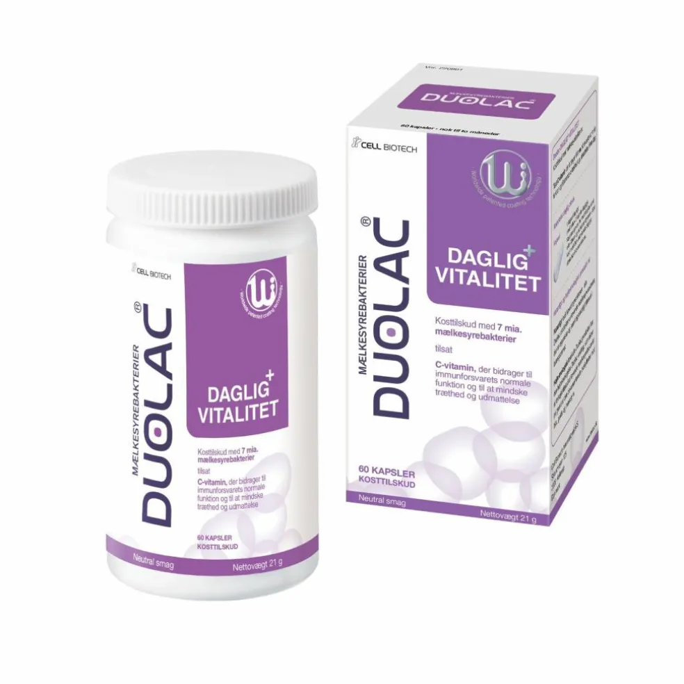 Hver kapsel indeholder 7 milliarder mælkesyrebakterier fra seks nøje udvalgte stammer. Indeholder også C-vitamin, som bidrager til immunforsvarets normale funktion og til at mindske træthed og udmattelse.