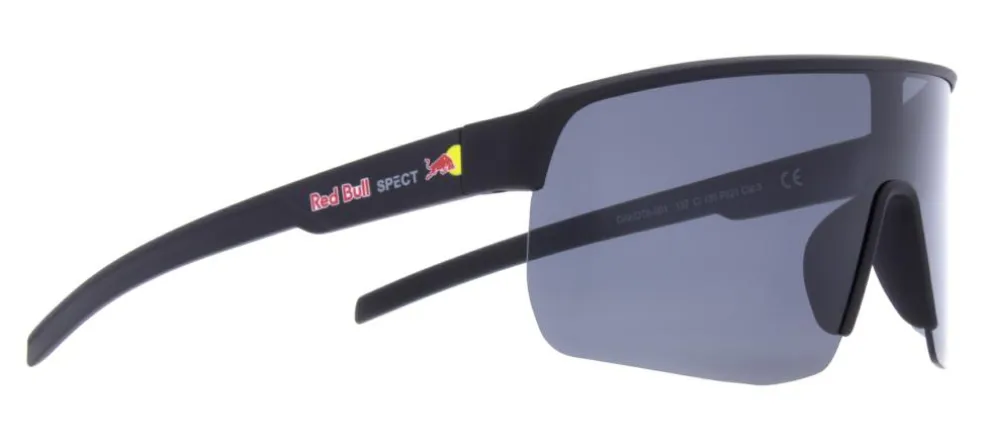 Front og brille: Soft touch sort Linse: Sort og mørk spejl; CAT3 Form: Mono (Shield) – ideel til alle sportsgrene