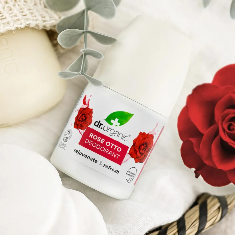 Dr. Organic – Rose Otto Deodorant er en deodorant beriget med rosenolie. Dr. Organics deodoranter er særdeles populære. Alle Dr. Organics produkter er minimum 70 % økologiske.